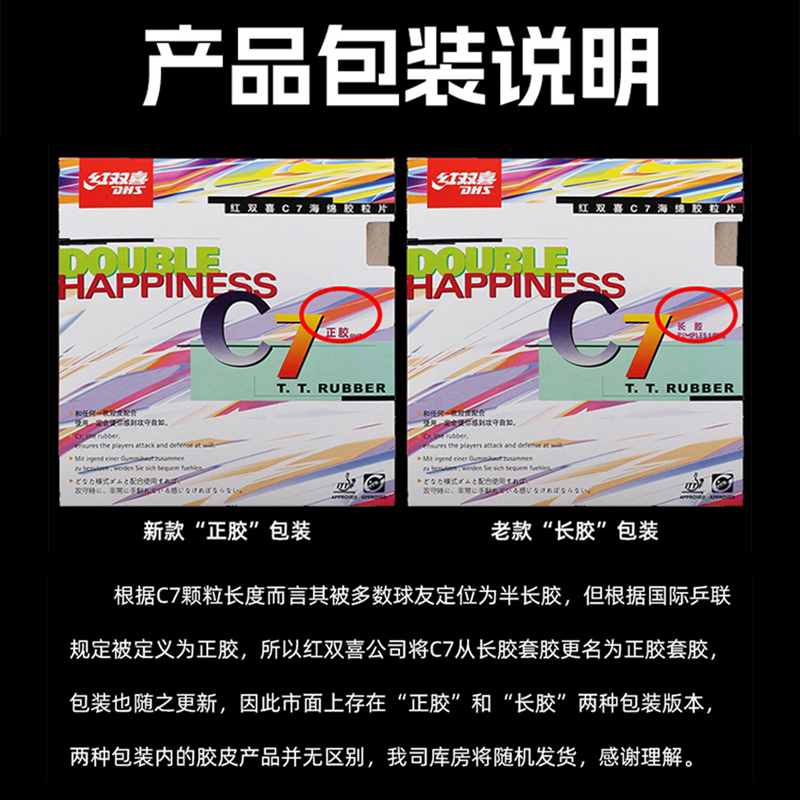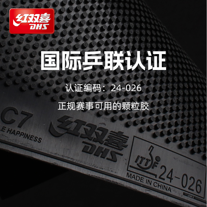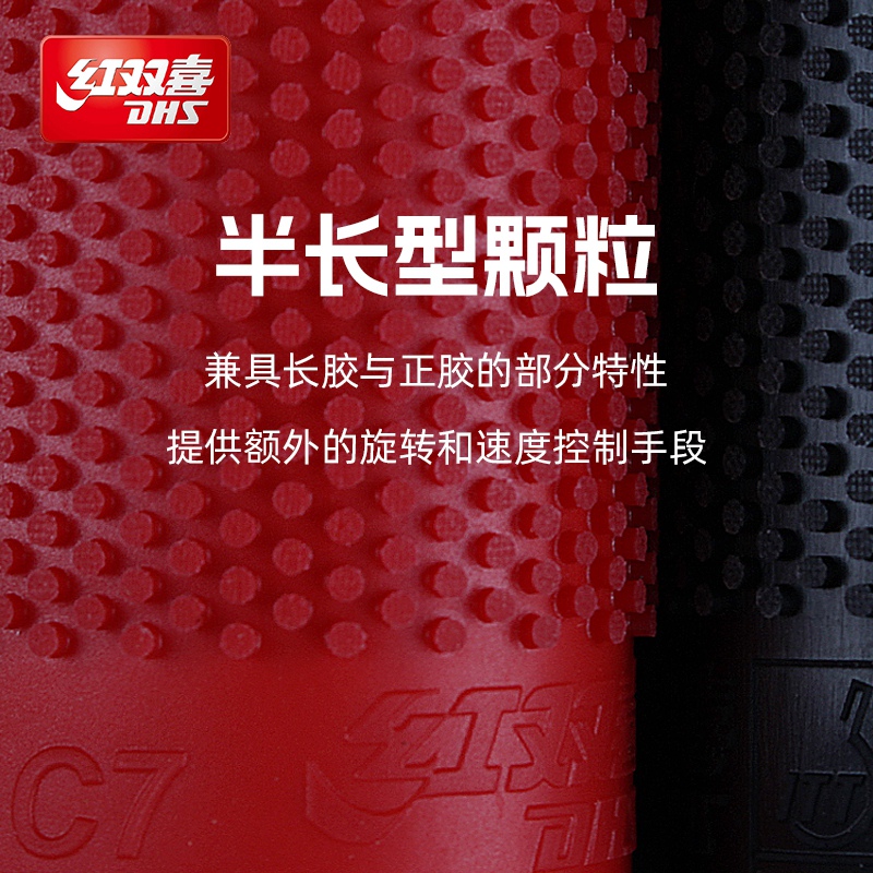 红双喜乒乓球拍胶皮C7正胶套胶带海绵半长胶颗粒兵乓球高胶防弧