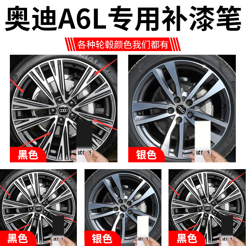 奥迪a6l轮毂修复剐蹭补漆笔黑色银色18寸原厂20寸改装用品大全