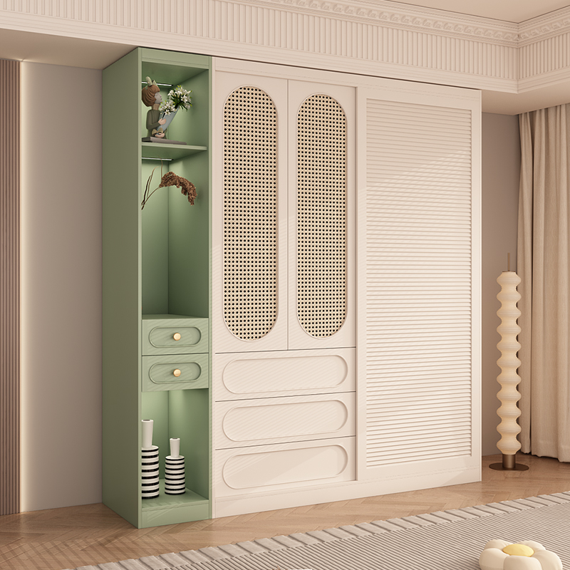 法式奶油风推拉门衣柜家用卧室现代简约实木大衣橱2024新款可定制