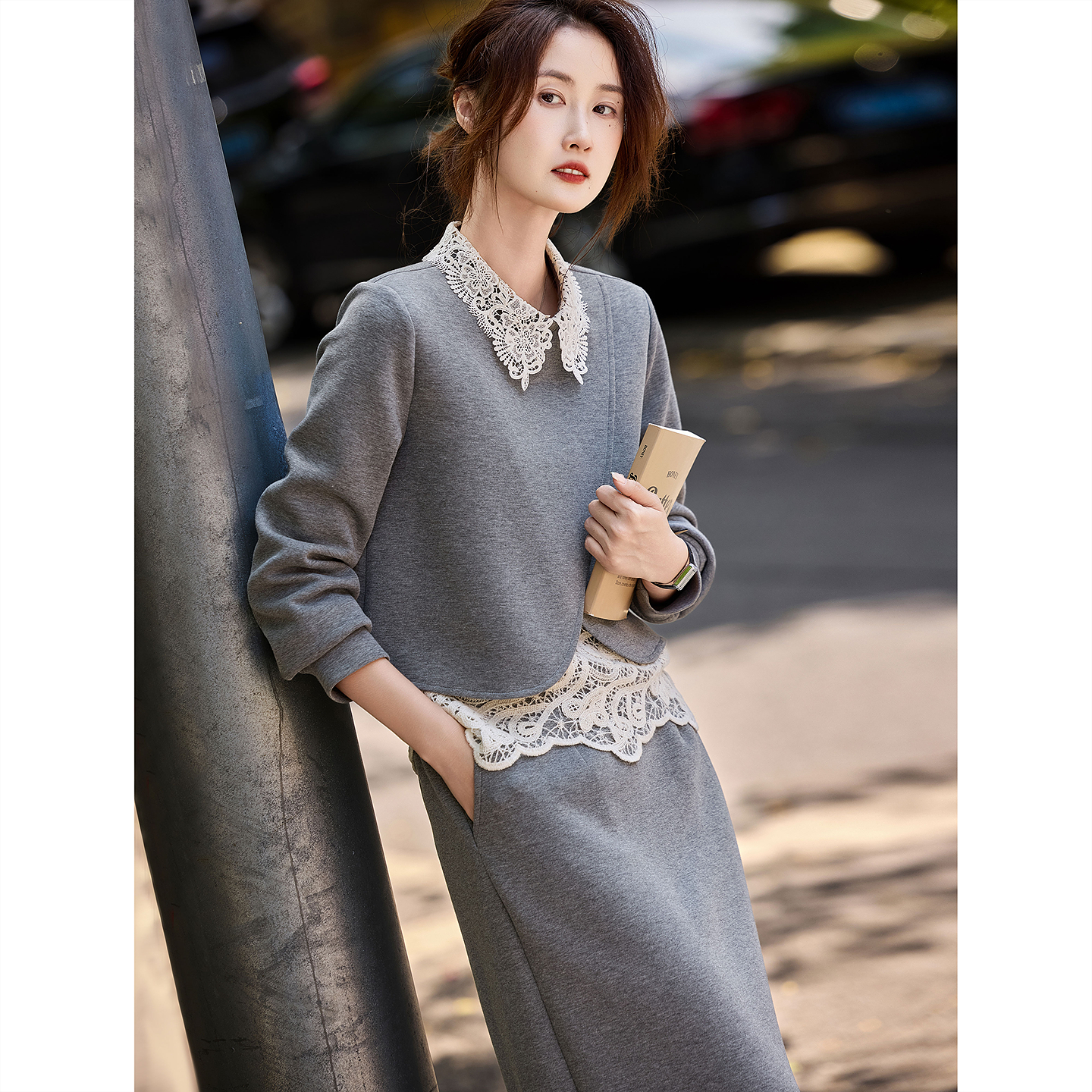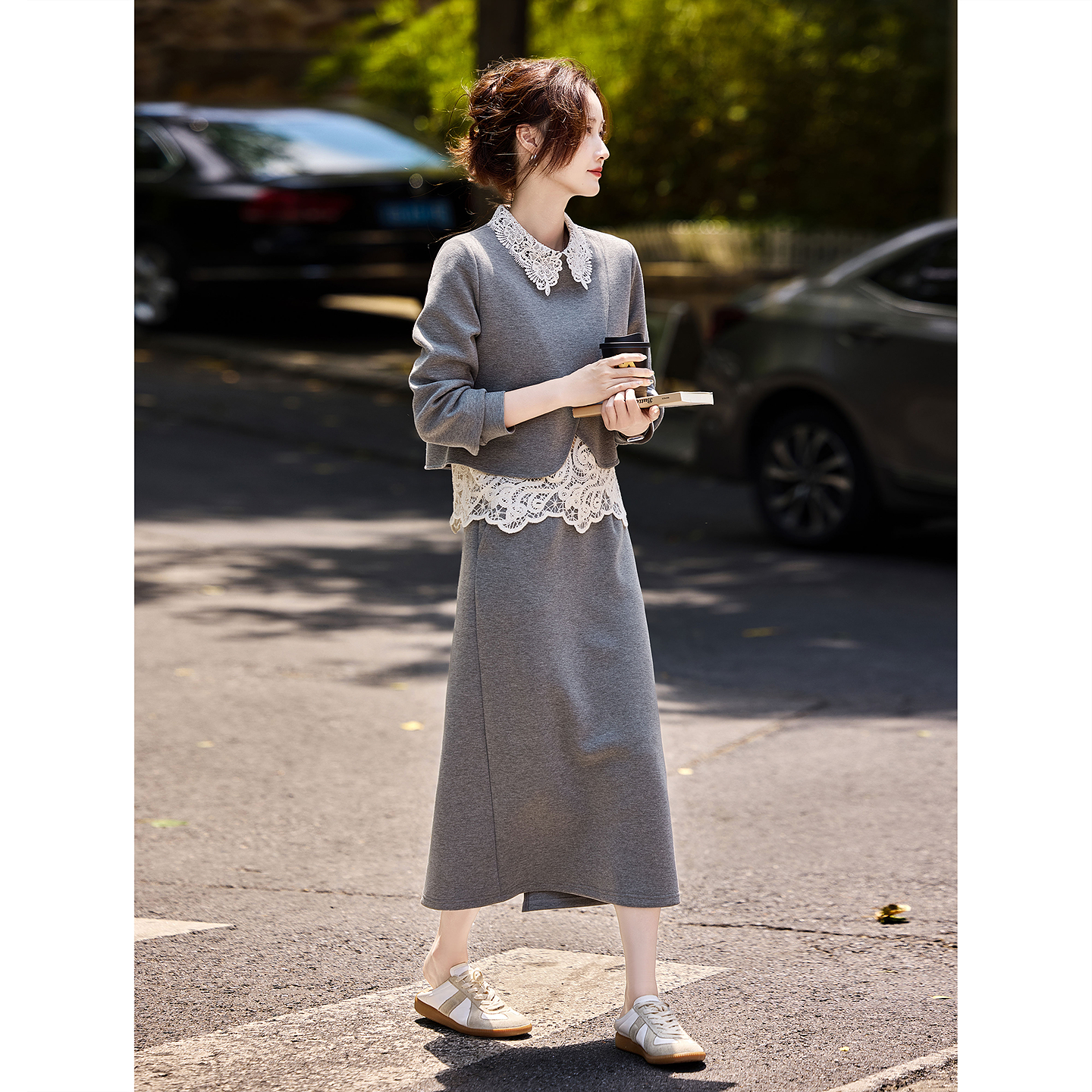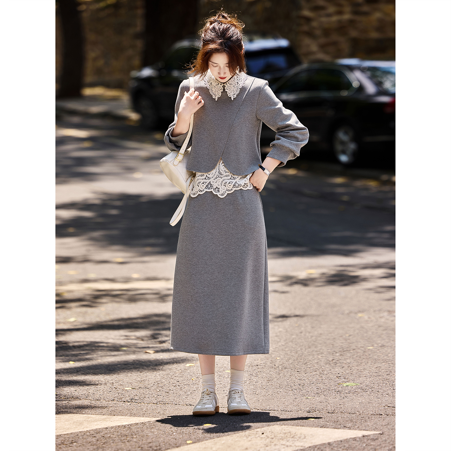 苏醒的乐园2025年秋季新款蕾丝拼接卫衣半裙套装女两件套