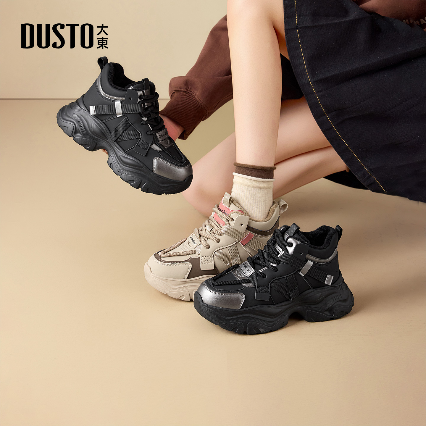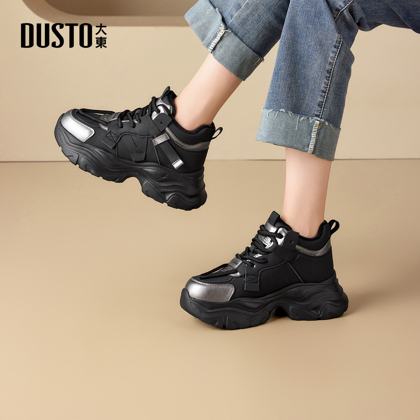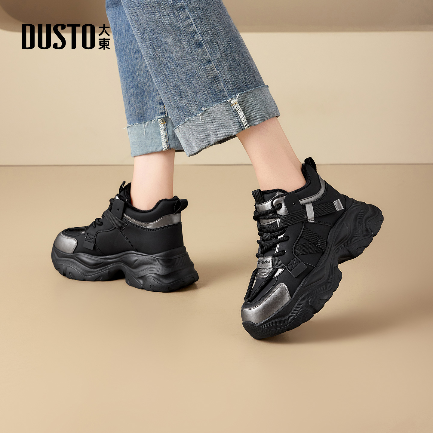 大东dd老爹鞋女2025秋冬新款女鞋运动休闲鞋增高厚底百搭黑色鞋子