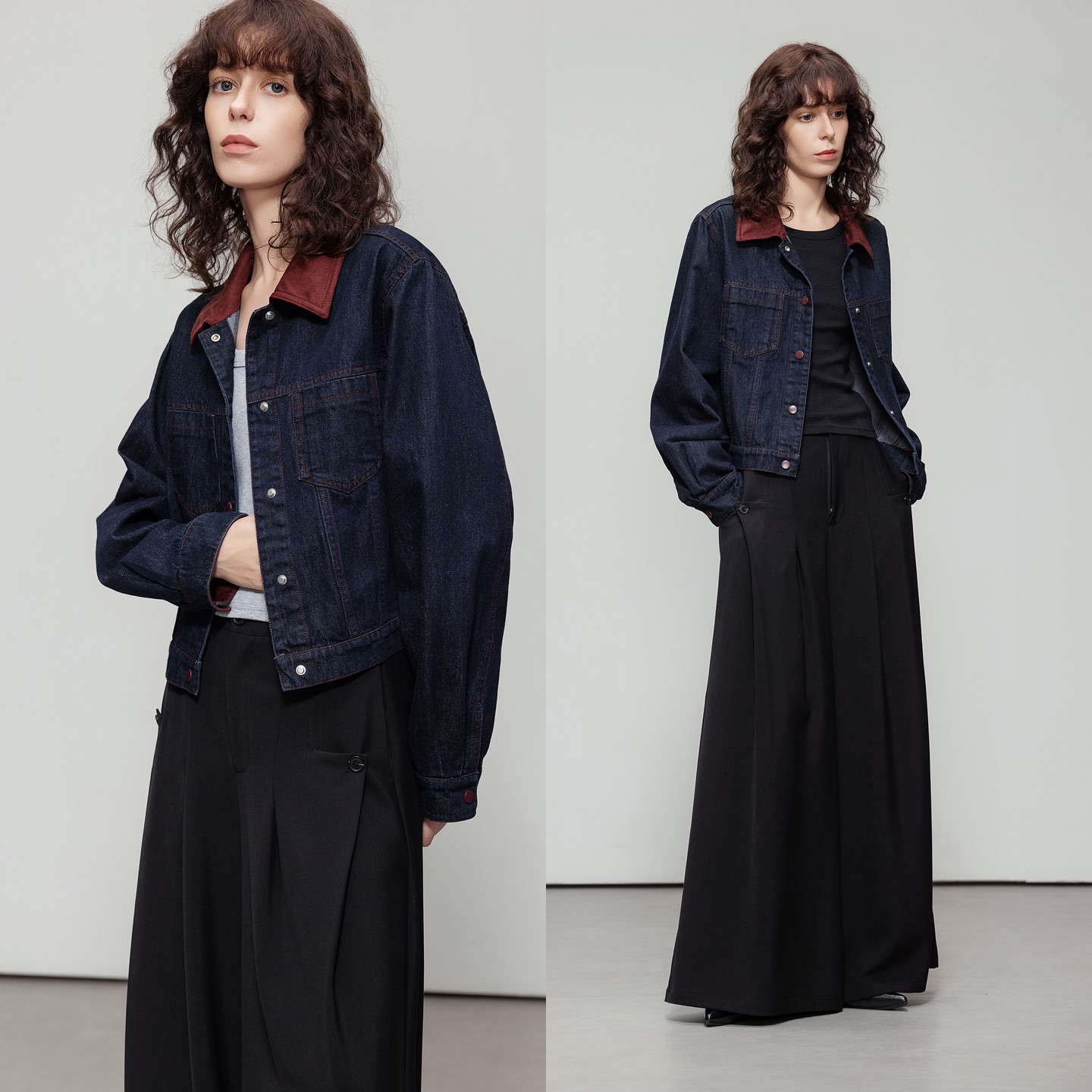 德玛纳复古风麂皮绒翻领牛仔外套女春秋新款四合扣短款夹克上衣