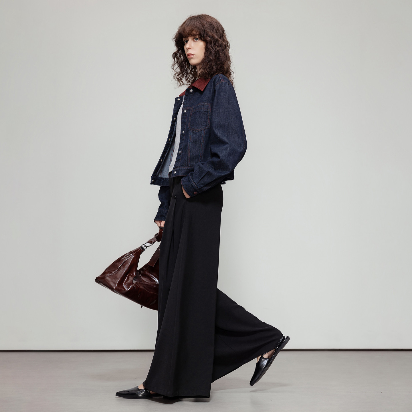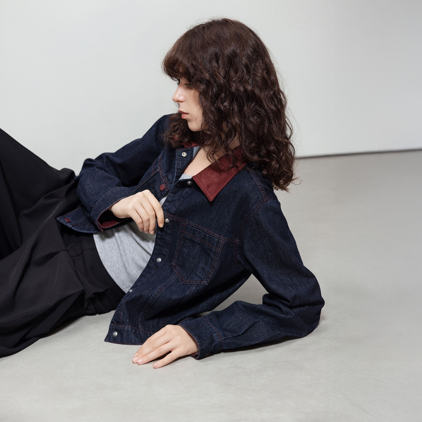 复古风麂皮绒翻领牛仔外套