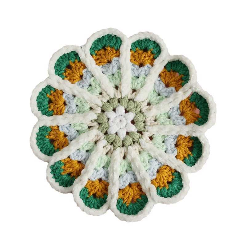 甜美手工编织渐变色杯垫 毛线钩织圆形餐盘垫 精美手作装饰小垫子