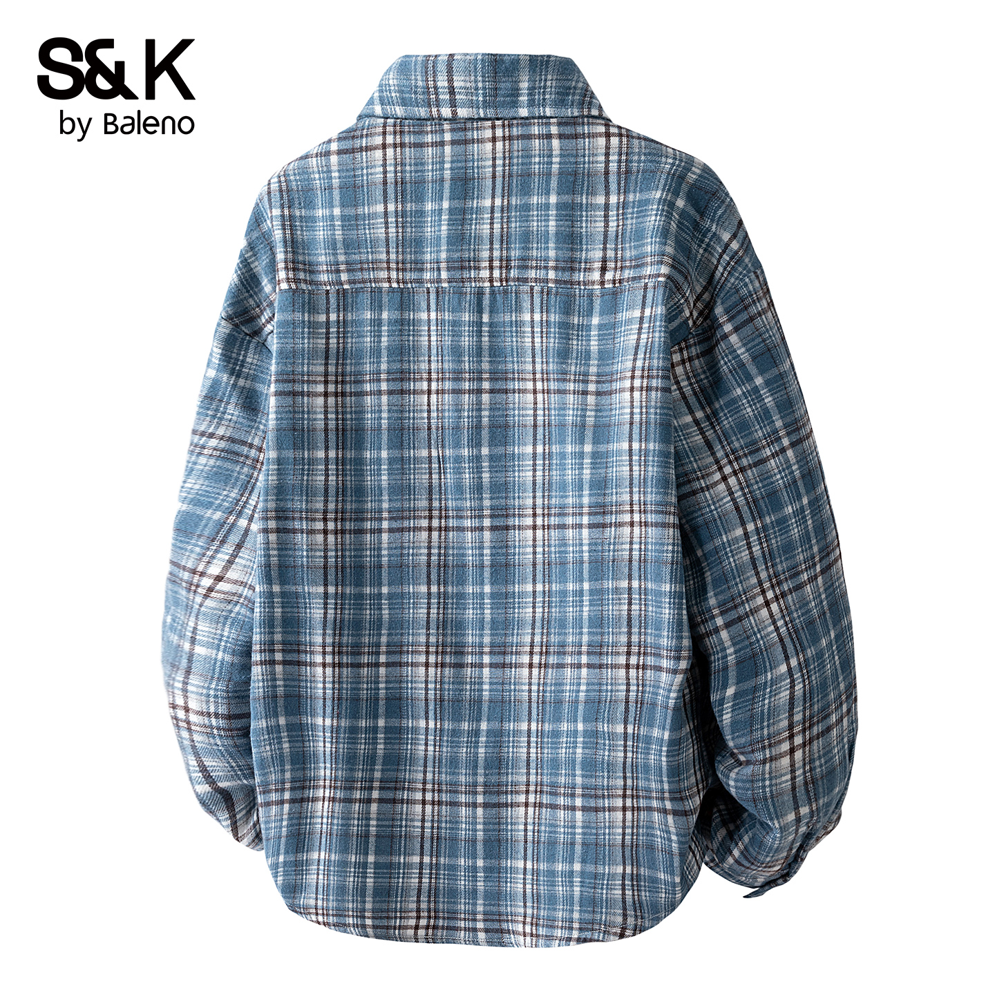 班尼路SK春秋季日系新款格子长袖衬衫男士宽松潮流百搭衬衣外套MS