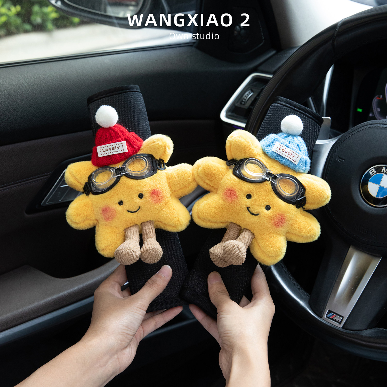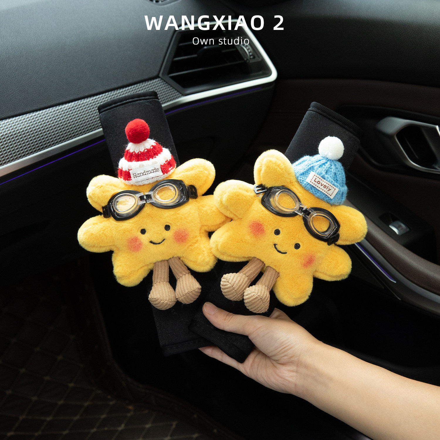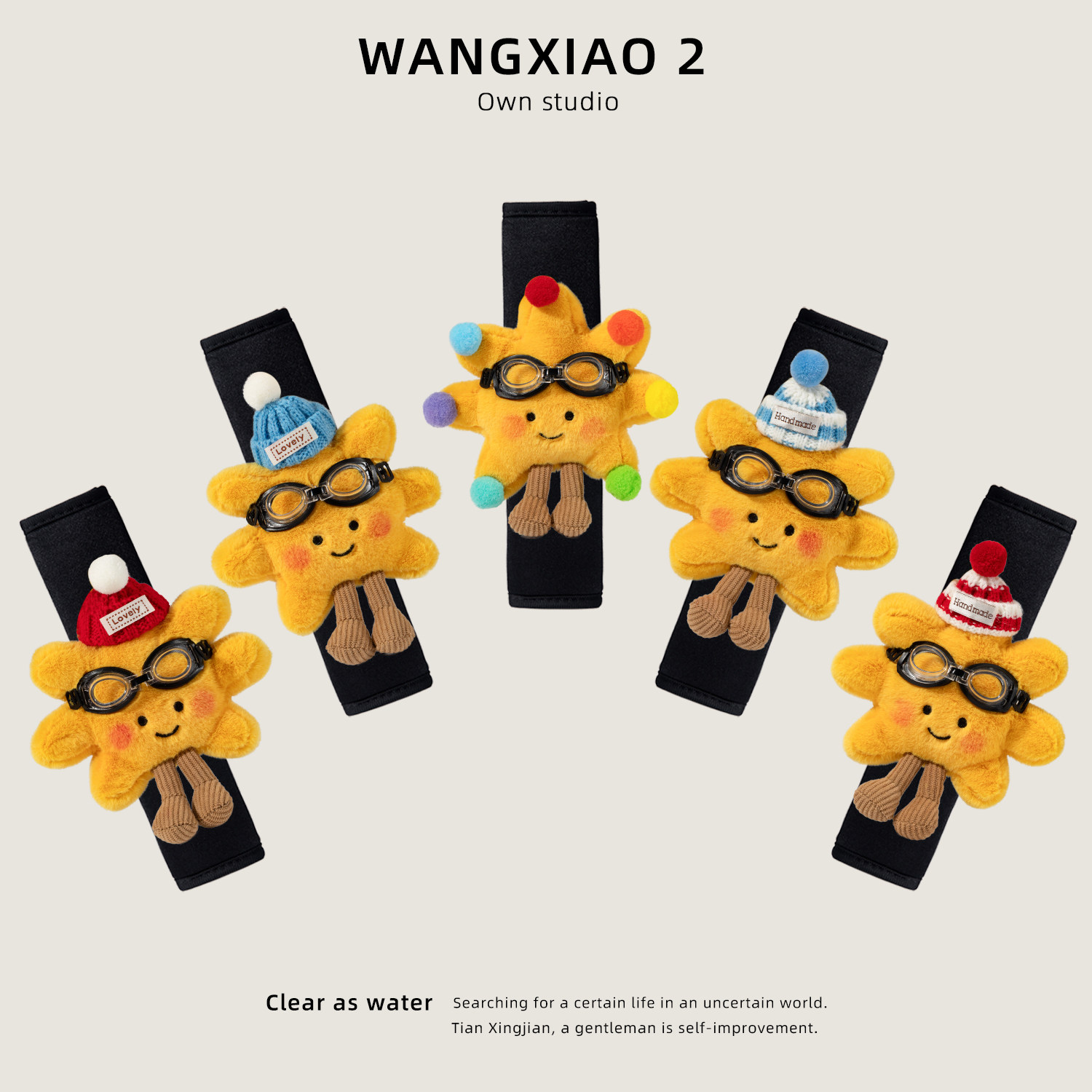 WANGXIAO 2毛绒彩虹太阳花汽车安全带护肩套创意公仔玩偶车载内饰