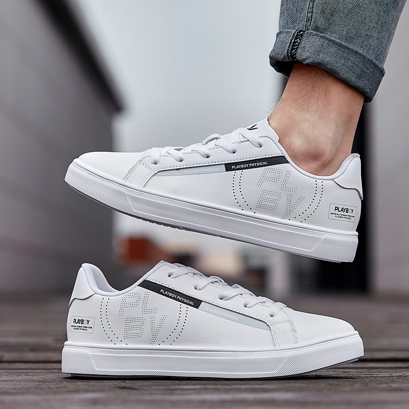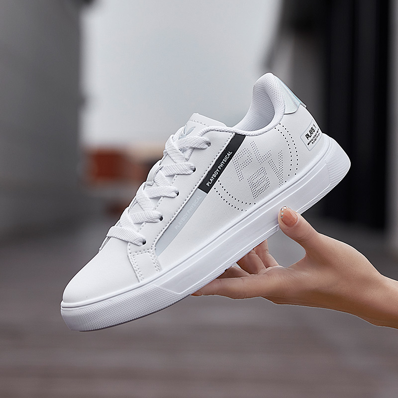 正品花花公子PLAYBOY白色休闲板鞋校园风平底学生百搭板小白鞋