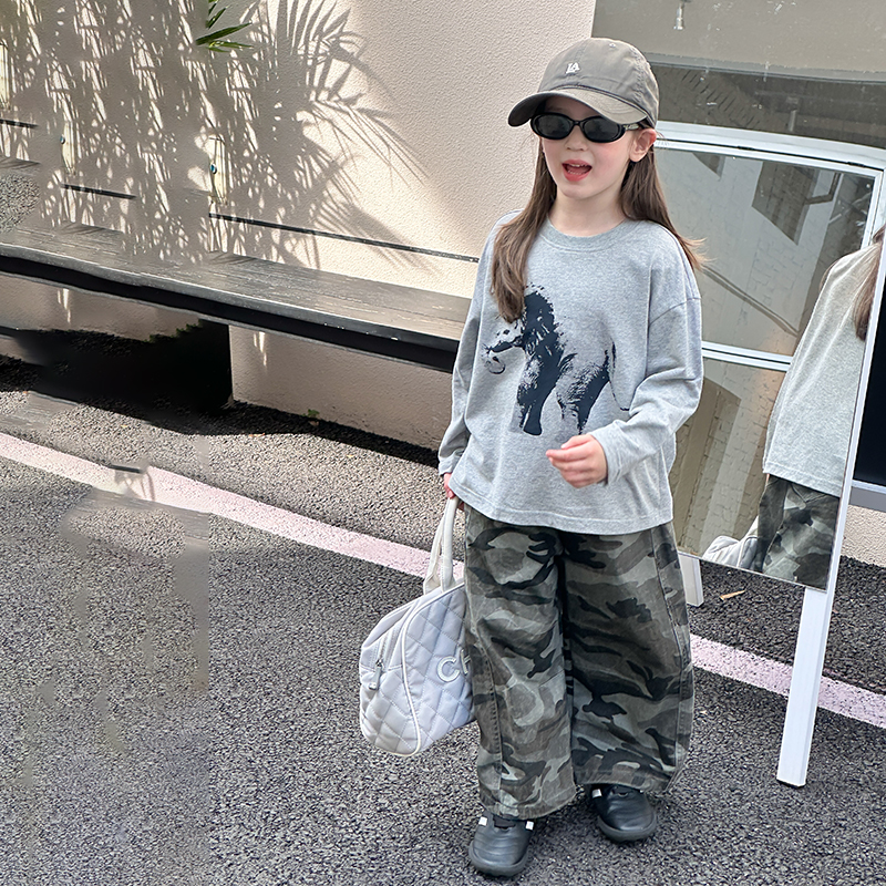 依依妈2025秋装女童宽松打底衫儿童韩版休闲卡通大象印花长袖T恤