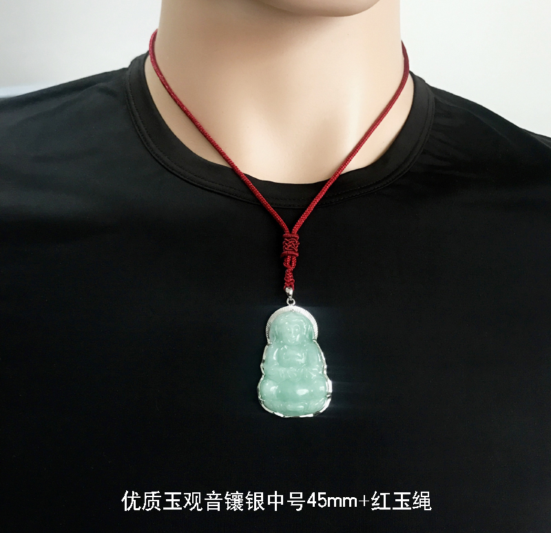 男士吊坠挂件玉观音项链翡翠玉石A货包银缅玉本命年观音佛吊坠男