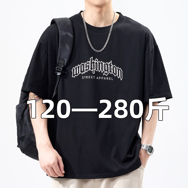 高个子男士短袖T恤大码加长宽松复古青年胖子加肥加大男装上衣潮