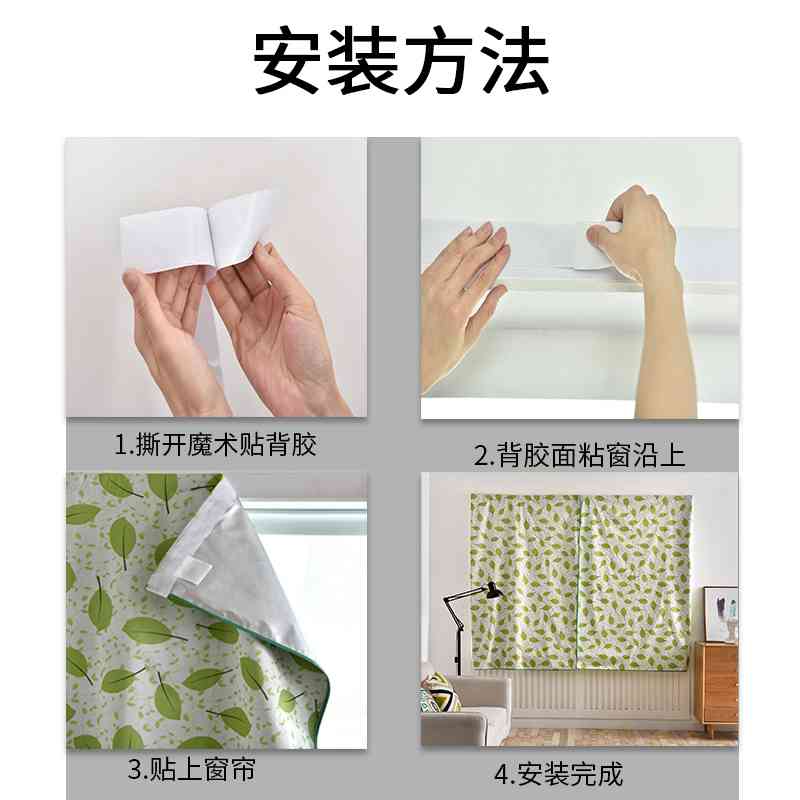 魔术贴遮光窗帘全遮光布简易自粘式免打孔安装防晒隔热遮阳遮挡帘