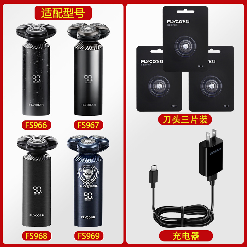 适用飞科剃须刀FS969刀头刀片FS968刮胡刀充电器电源线配件FS967
