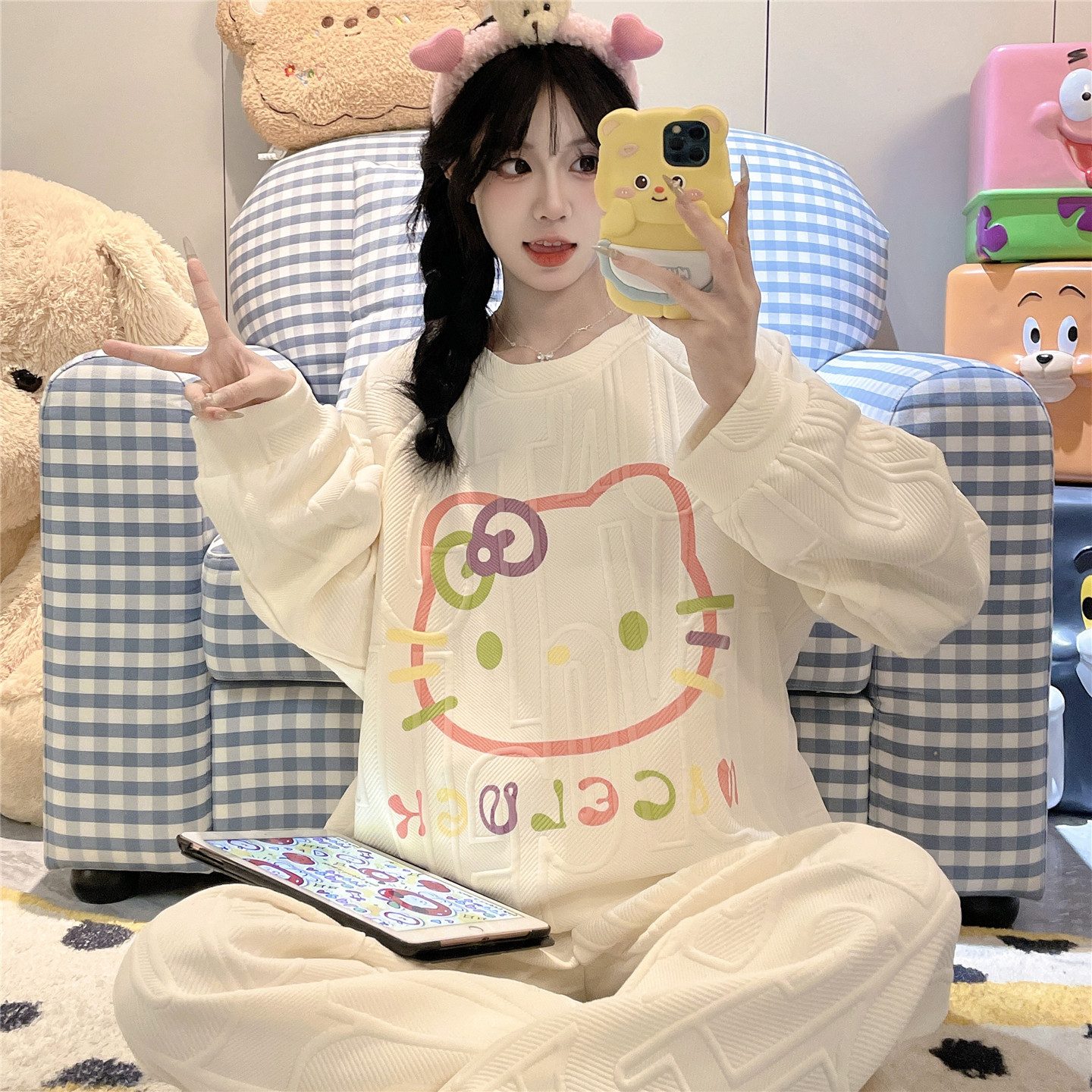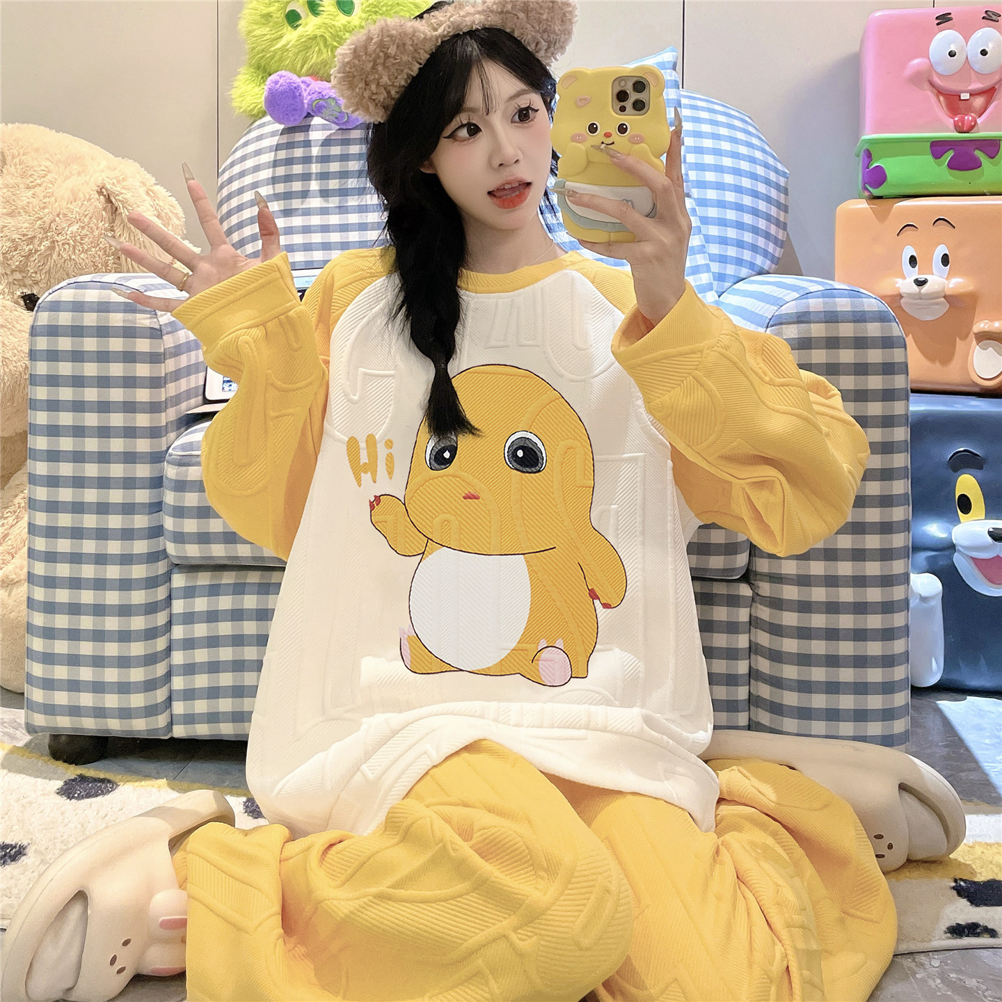 女孩中大童睡衣春秋季长袖夹层棉美少女初中学生ins风家居服套装