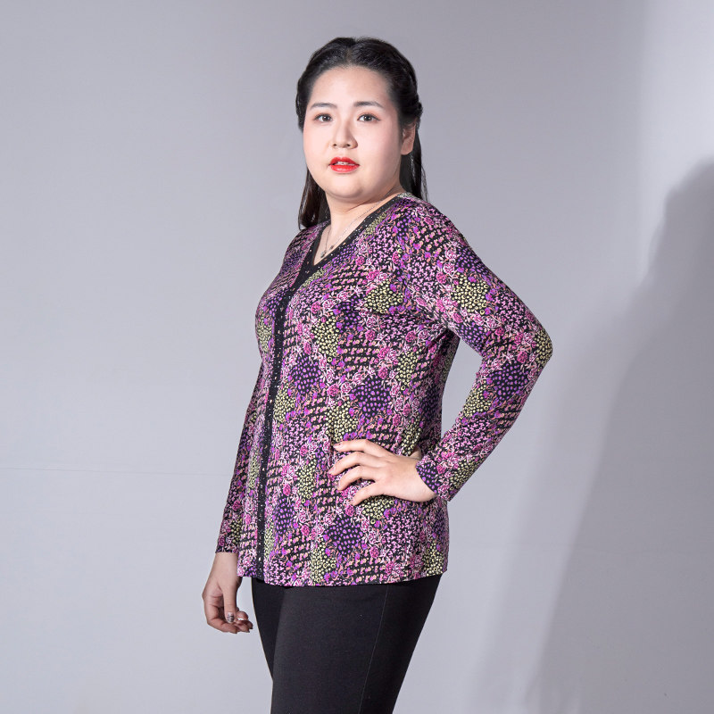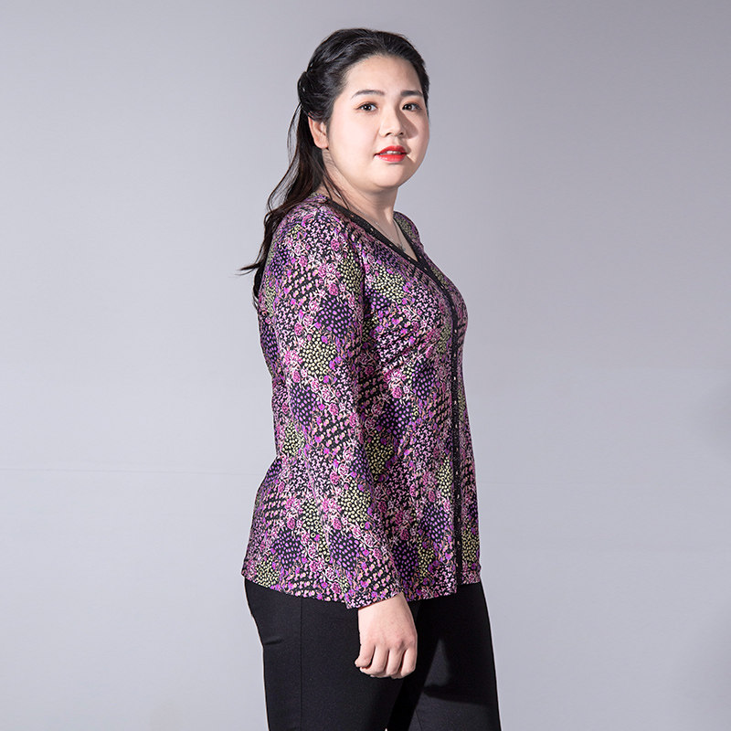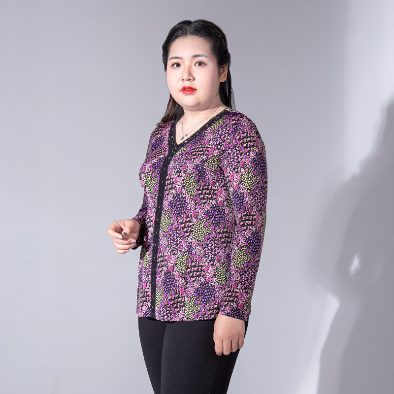 胖太太大码女装春夏新款碎花V领雪纺上衣套头衫轻薄舒适822216710