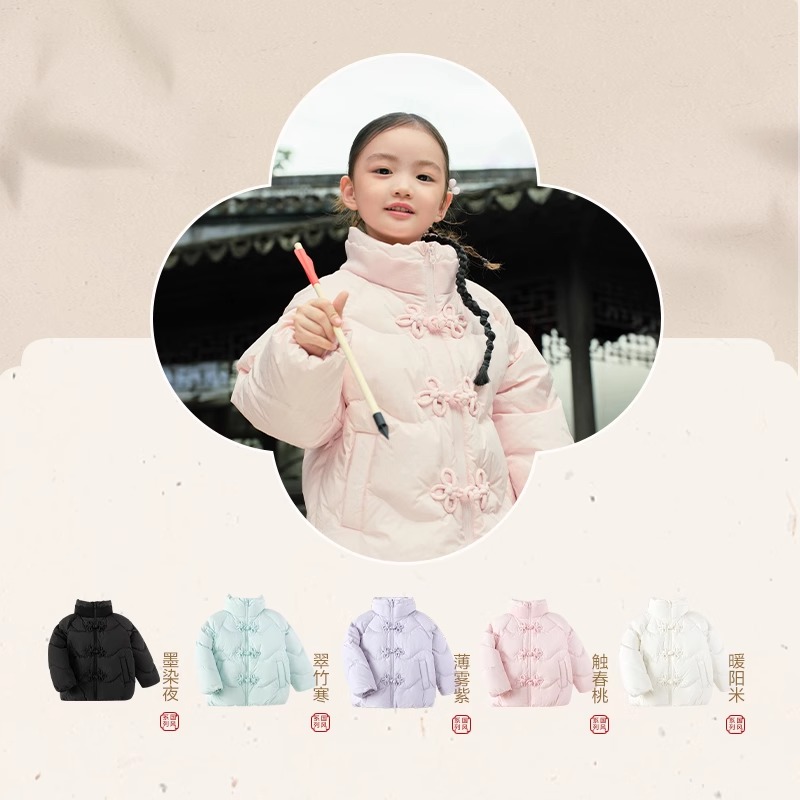 巴拉巴拉童装女童羽绒服2024冬装新款保暖短款新中式宝宝立领外套
