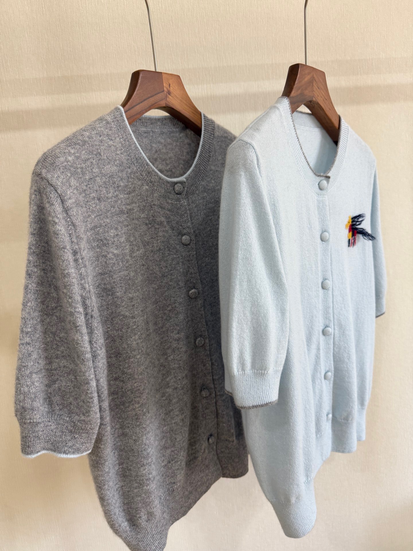 2025秋冬新100%山羊绒衫女圆领刺绣小马图案宽松针织毛衣短袖开衫