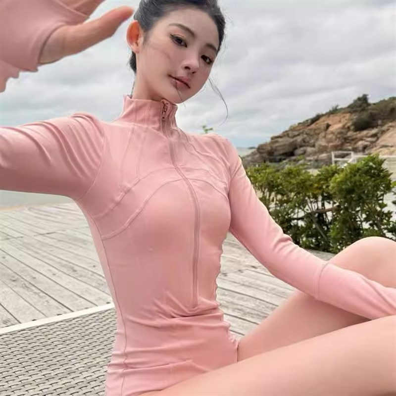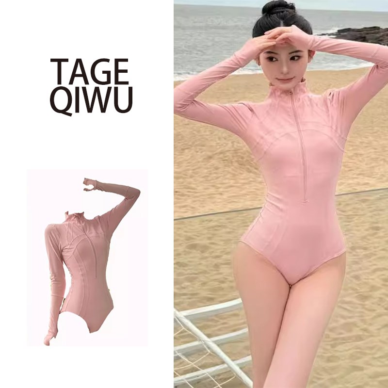 连体泳衣女士2025新款长袖防晒专业冲浪潜水服粉色遮肉显瘦泳装女
