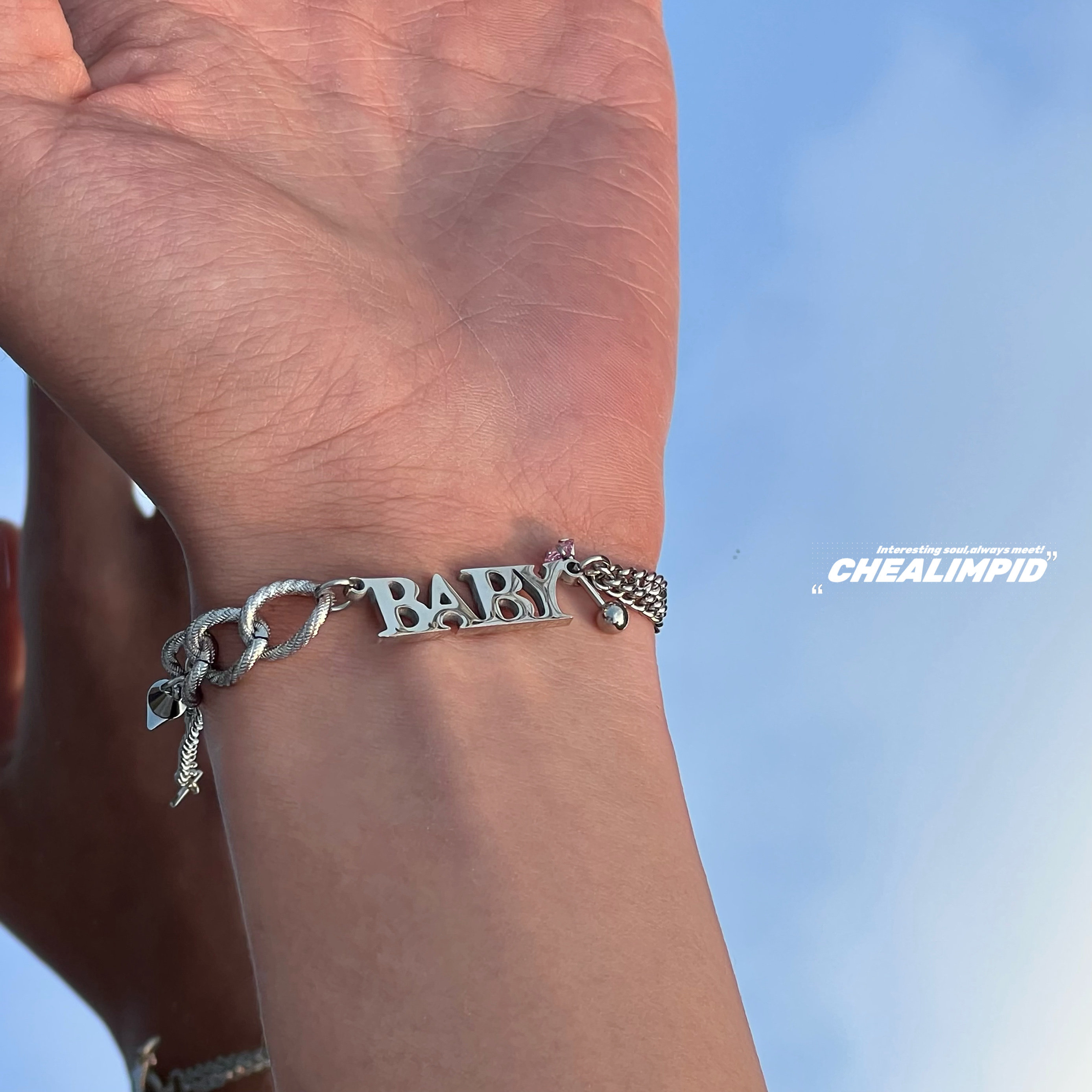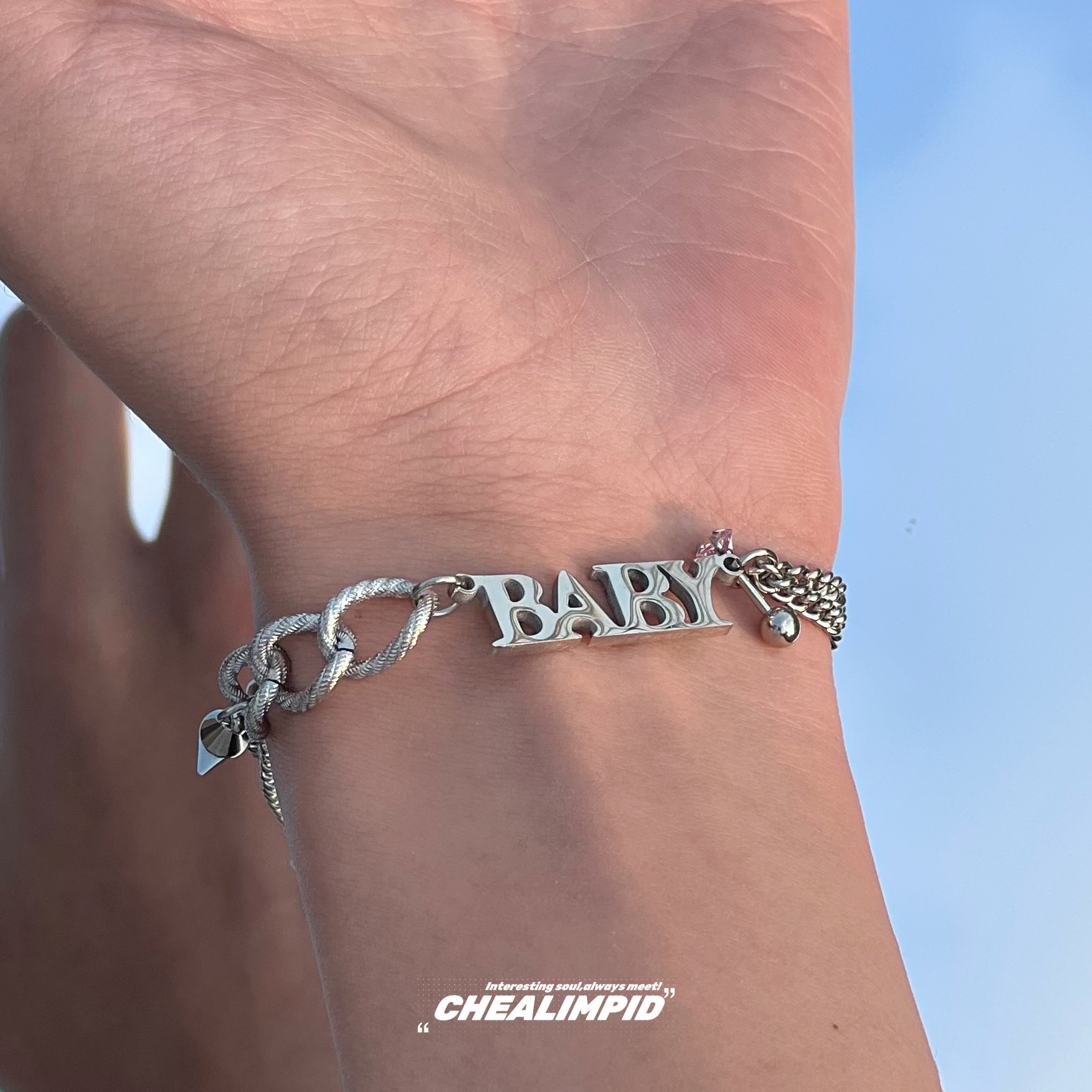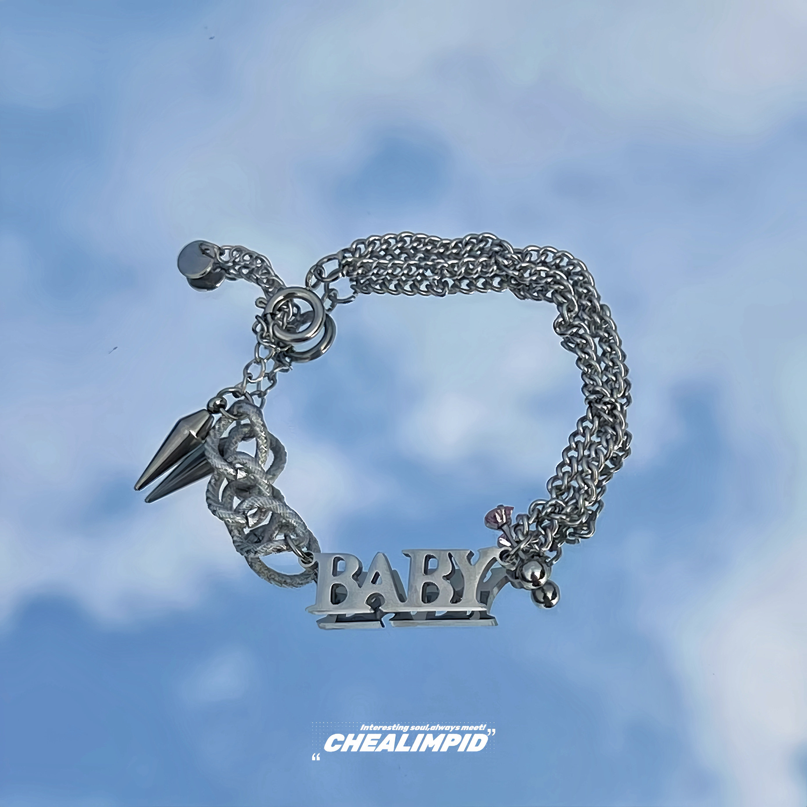 CHEALIMPID/.BABY字母钛钢铆钉街头手链嘻哈小众设计双层男女潮流