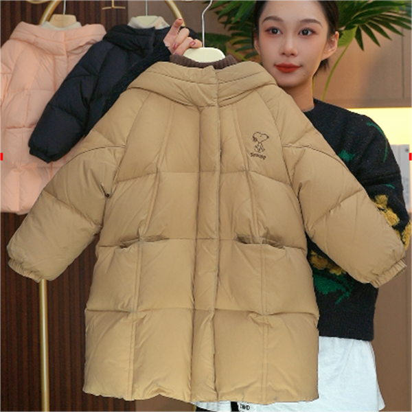 史努比儿童冬季羽绒服男女童白鸭绒中长款外套加厚保暖韩版外出服