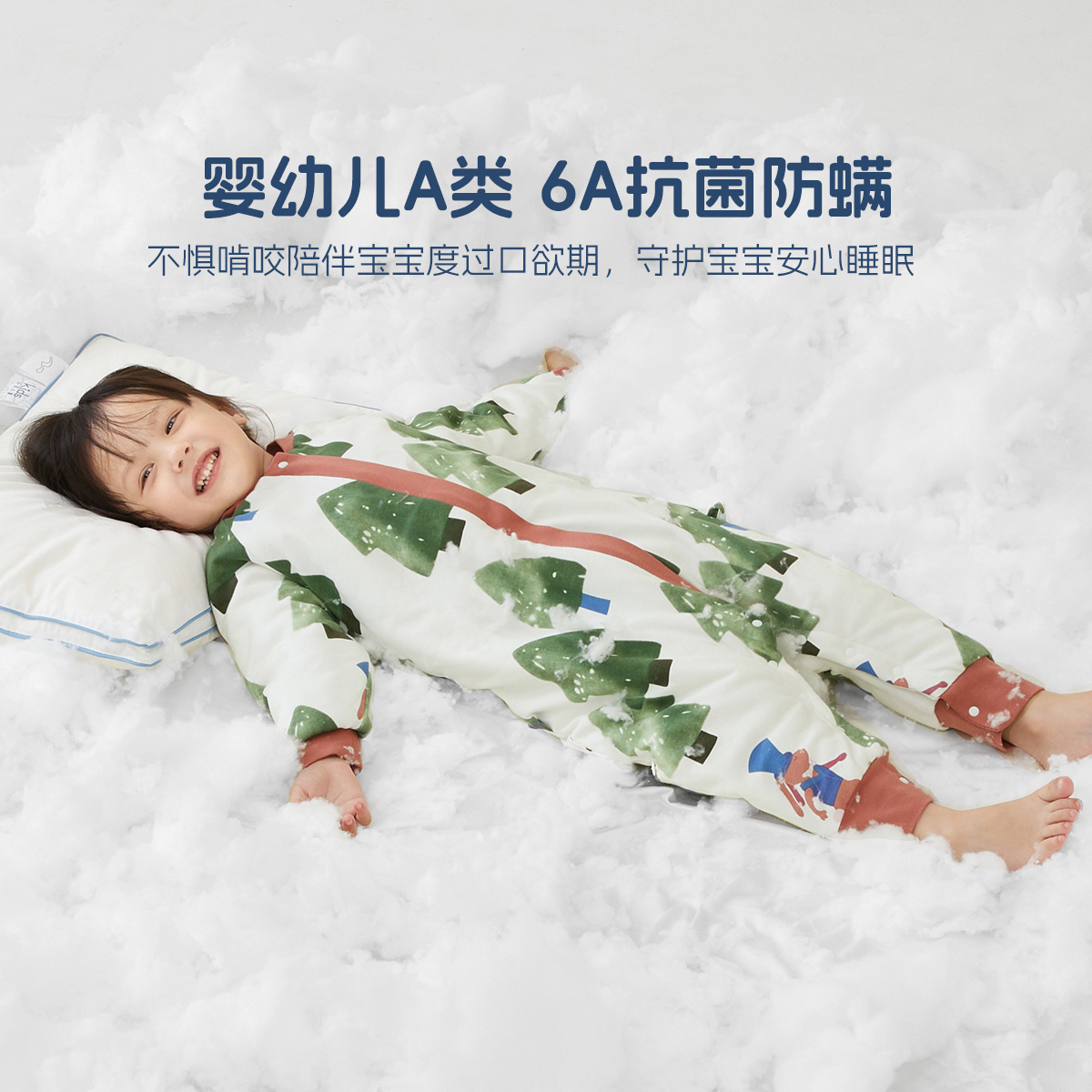 水星家纺低敏宝宝中厚分腿睡袋A类儿童抗菌防螨防踢被
