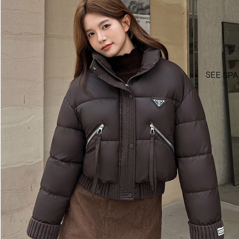 2025韩版时尚立领羽绒棉服女短款针织袖棉衣小个子冬季宽松棉袄潮