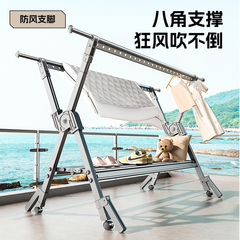晾衣架落地伸缩晾衣杆家用阳台凉折叠晒被子拖鞋神器晒衣服收纳架