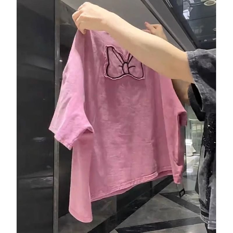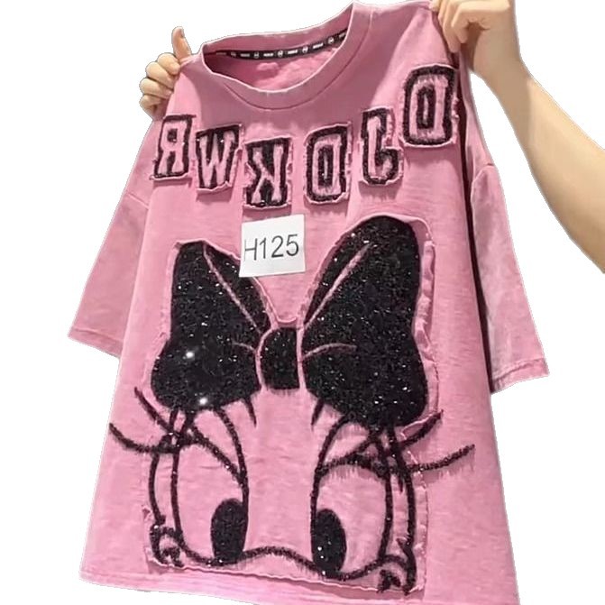 超大码2-300斤胖mm重工短袖T恤女宽松卡通贴布设计感小众洋气