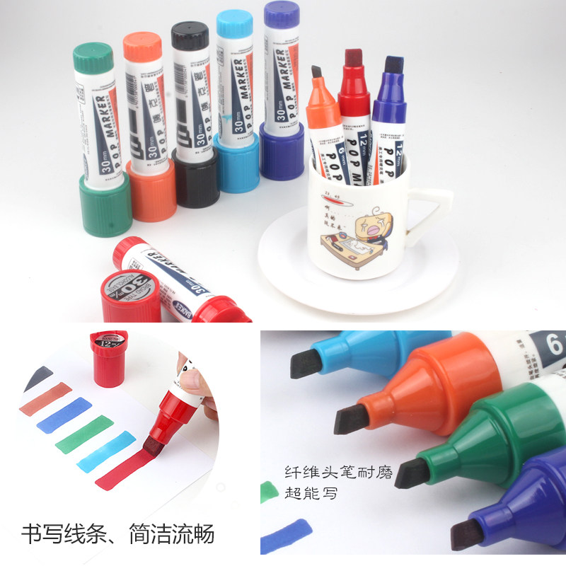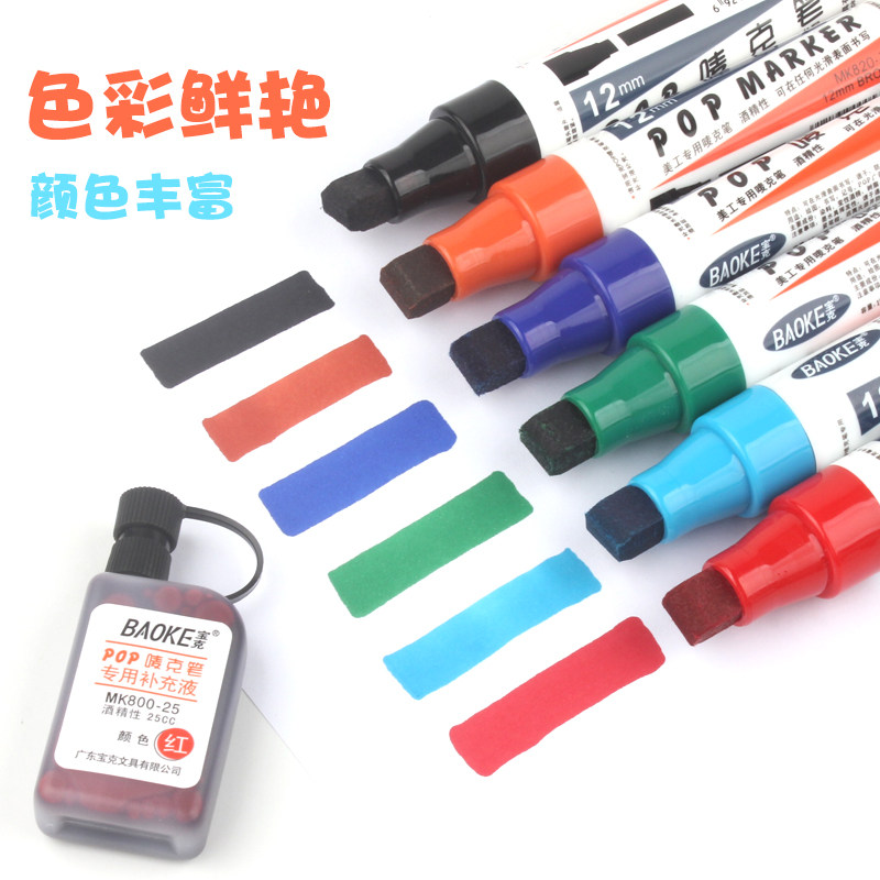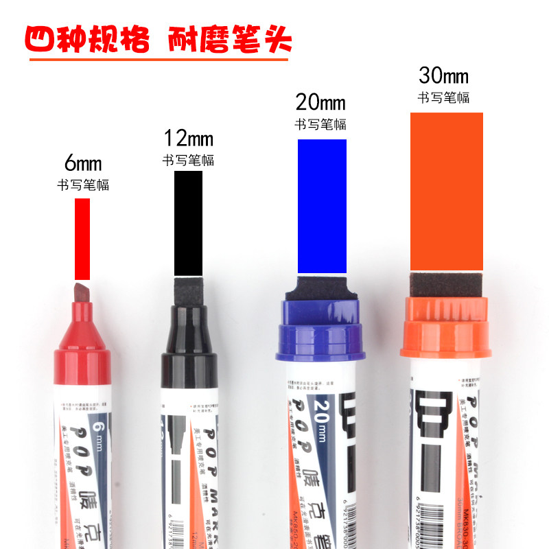 宝克6mm马克笔药店活动海报pop手绘笔20mm油性手机店新品上市大头彩绘笔可加墨30mm宽头笔超市美工专用笔12mm