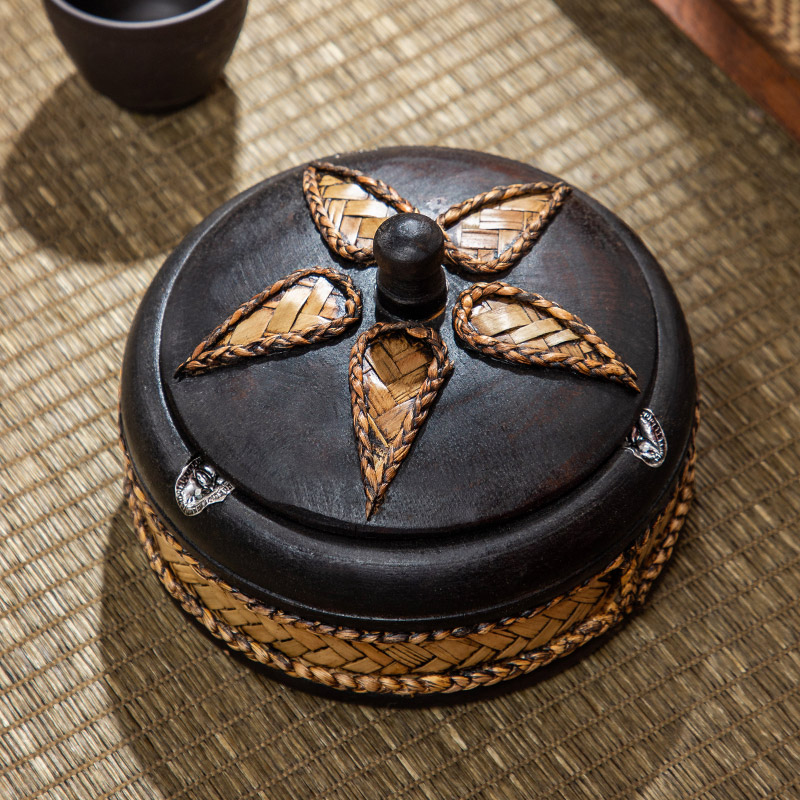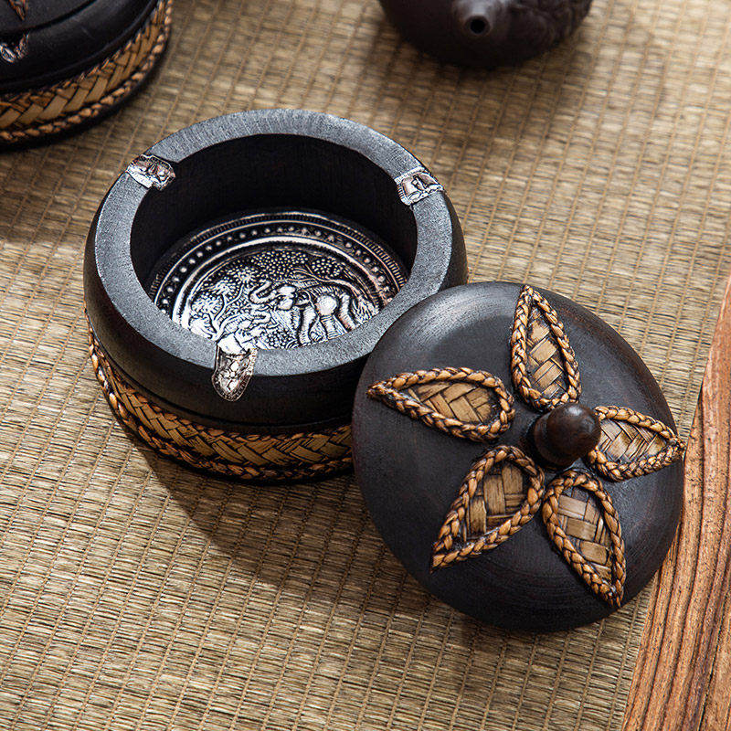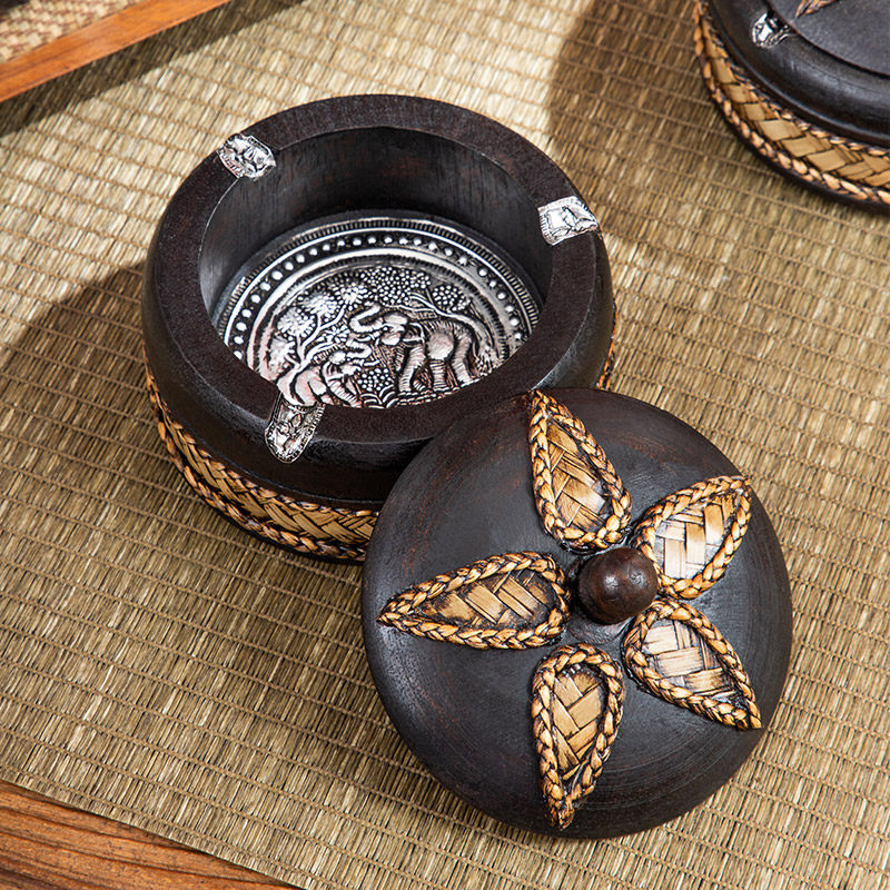 带盖实木质烟灰缸新中式复古家用客厅办公室茶桌禅意摆件创意烟缸