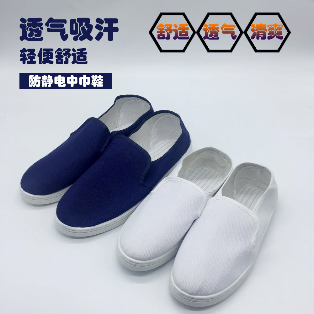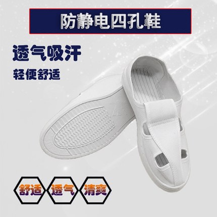 静电鞋白色工作鞋帆布无尘鞋净化鞋夏季透气四孔鞋防静电鞋洁净鞋