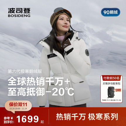 波司登2025冬季新款羽绒服女收腰短款极寒鹅绒保暖连帽户外工装风
