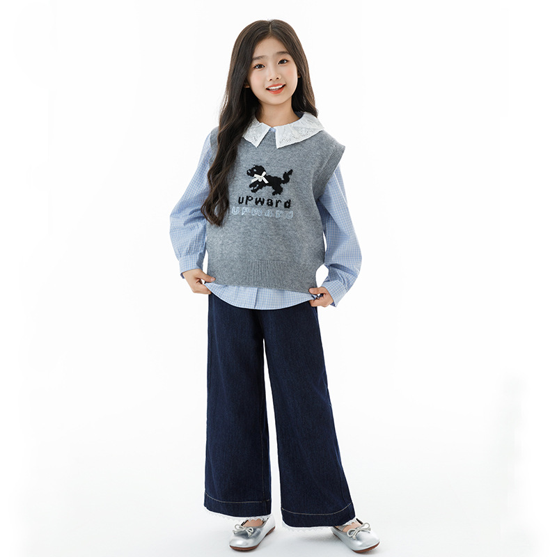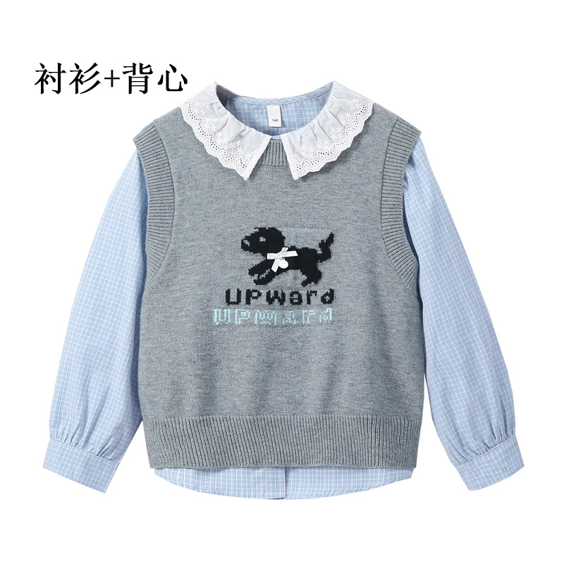 女童衬衫套装中大童针织毛衣马甲两件套2025秋季宽松上衣女孩