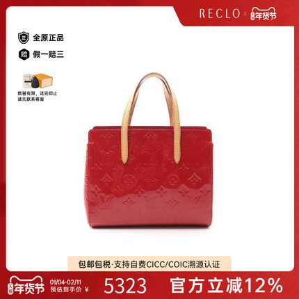 中古LV路易威登女包B级9新Katarina BB漆皮手提包红色高级RECLO