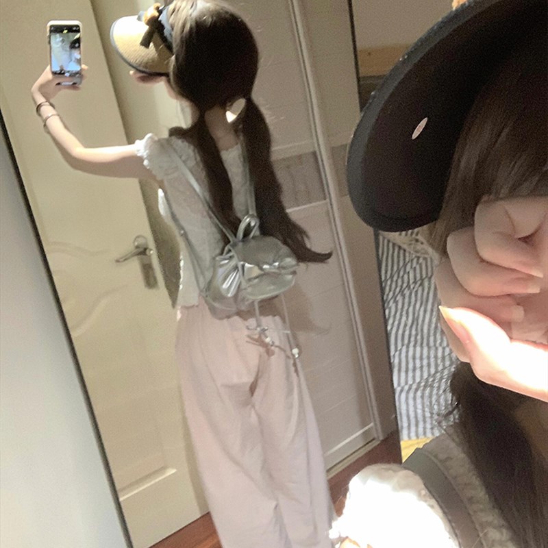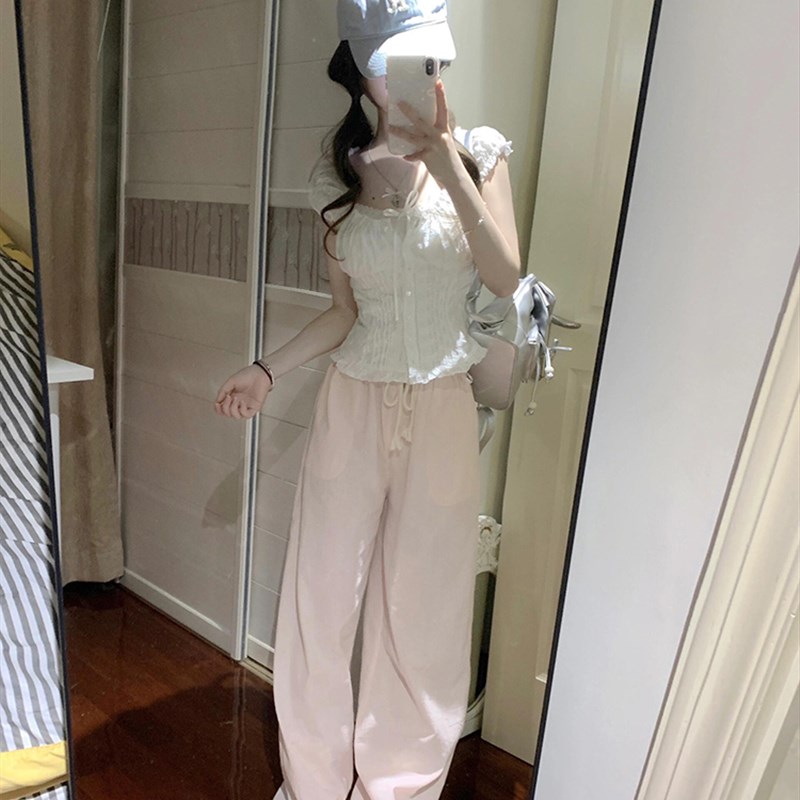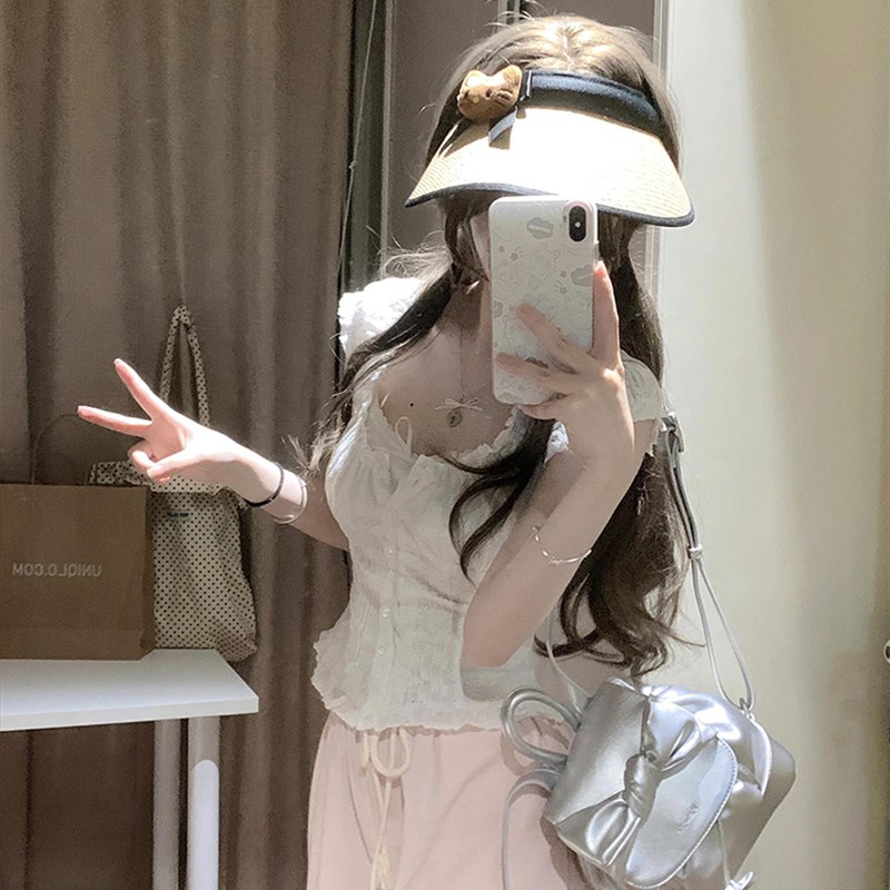 法式温柔甜美蕾丝短袖白色衬衫女夏季小众修身显瘦木耳边方领上衣