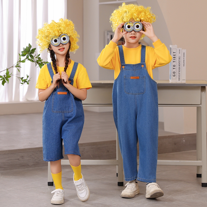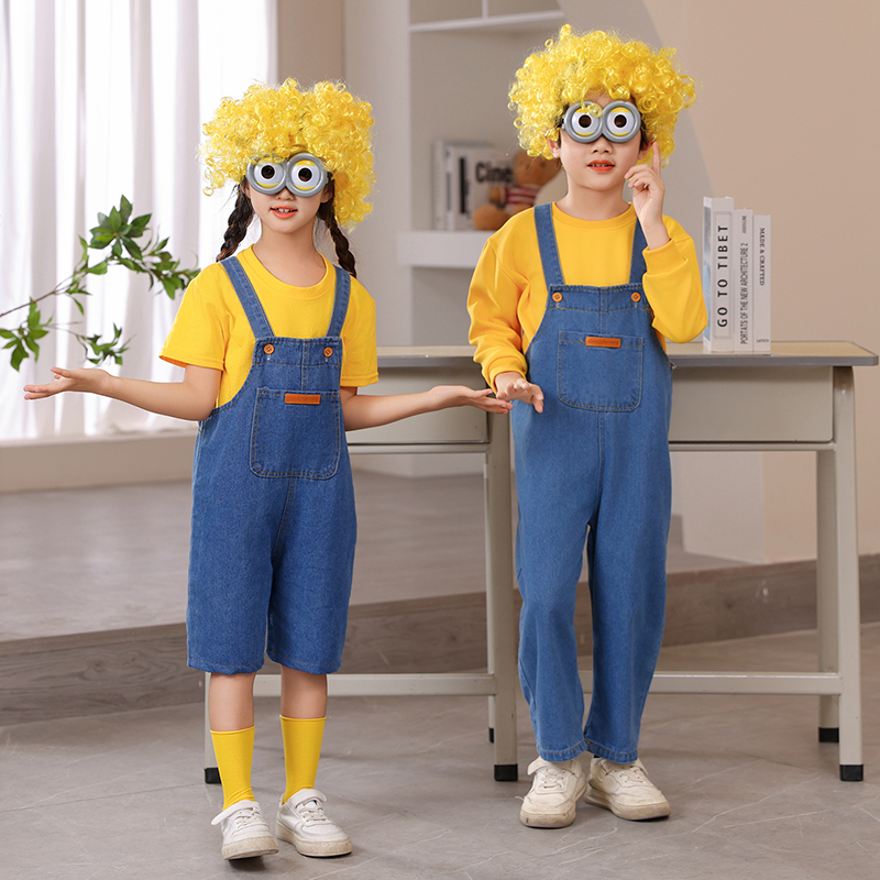 小黄人cos幼儿园舞蹈演出服男女童运动会衣服儿童牛仔背带裤服装