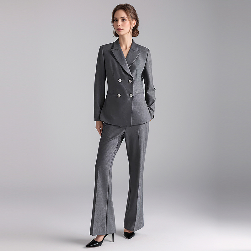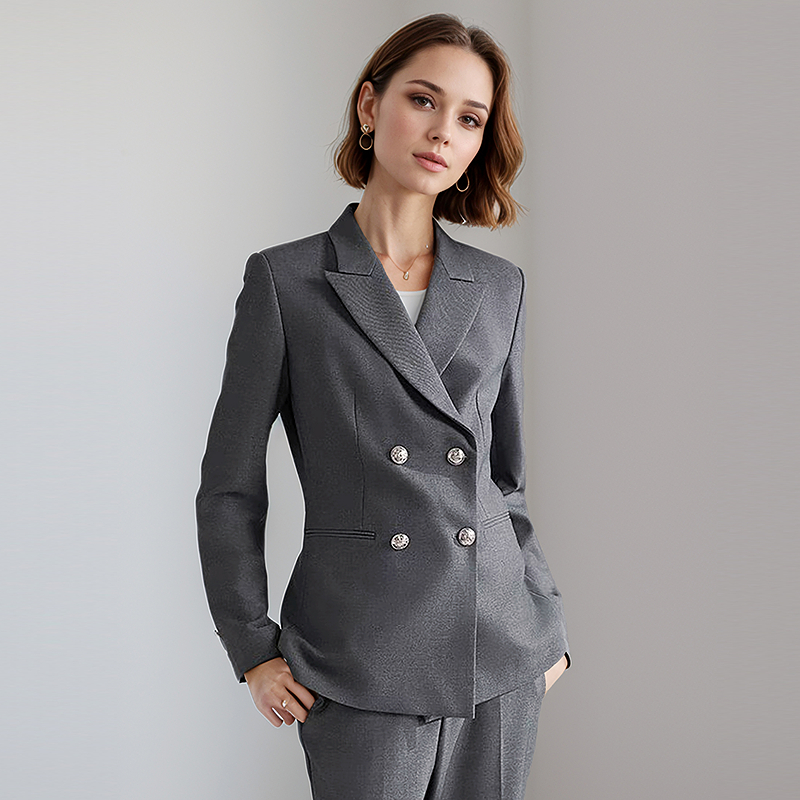 璐丝百丽灰色正装西装套装女春秋季工作职业装面试小个子西服外套