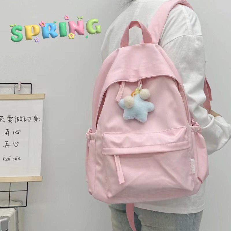 新款ins可爱纯色书包女韩版百搭休闲大学生双肩背包初中高中学生
