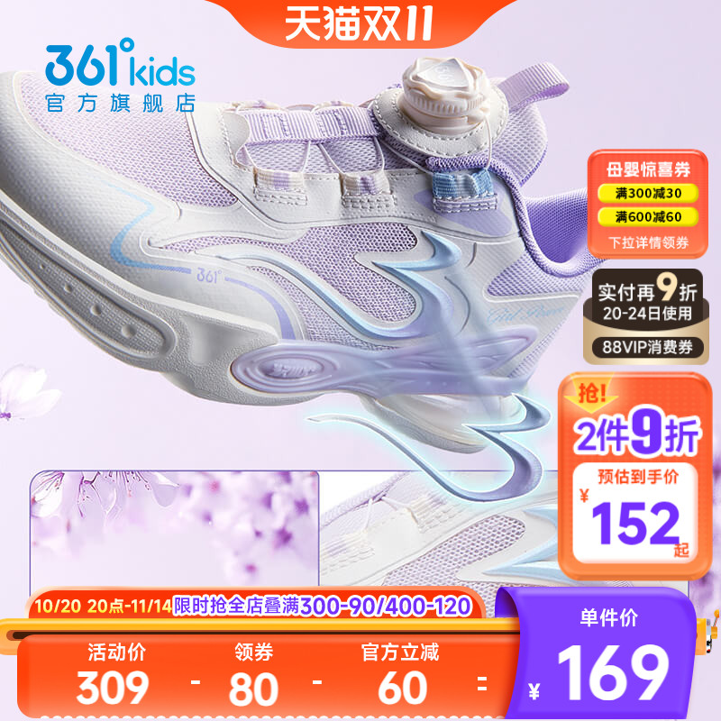 361度童鞋女童运动休闲鞋2025年秋季新款密网气垫鞋中大童女鞋子