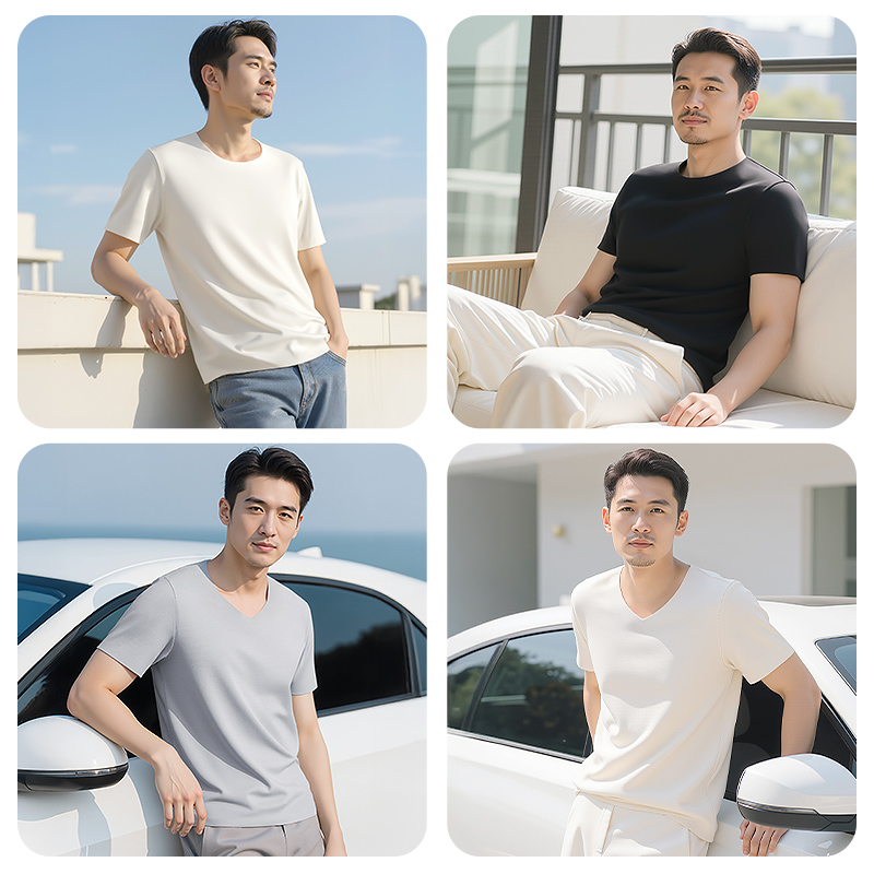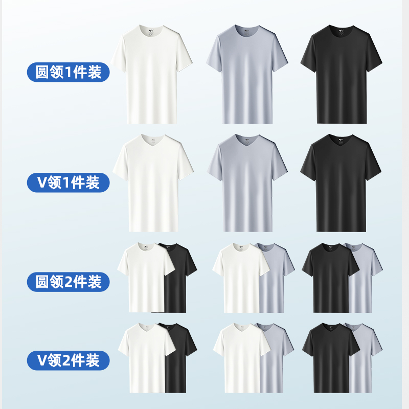 七匹狼男士秋季透气短袖V领打底衫不露莫代尔无痕T恤衫可外穿体恤