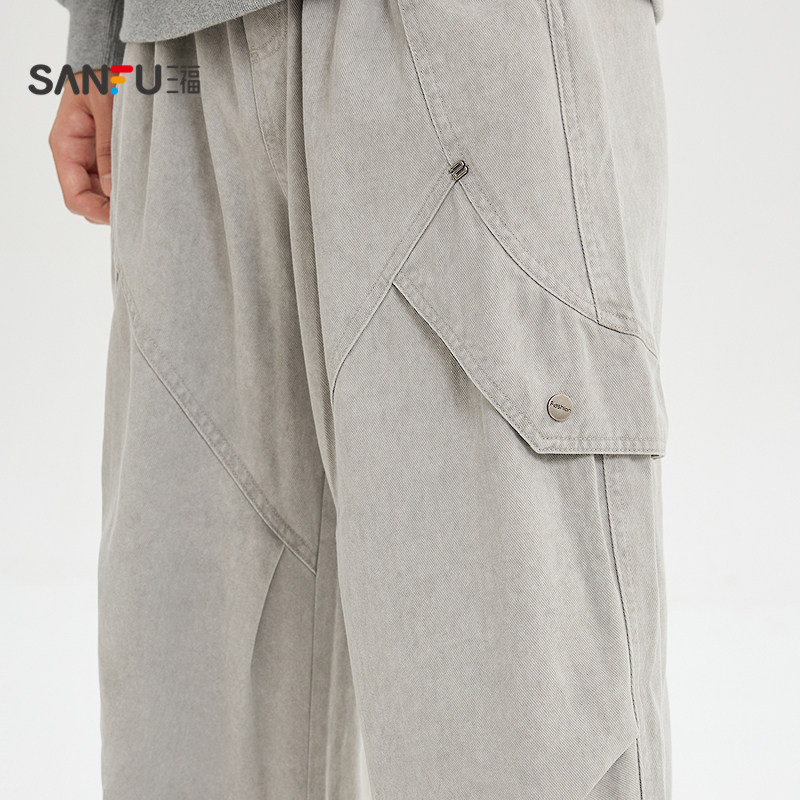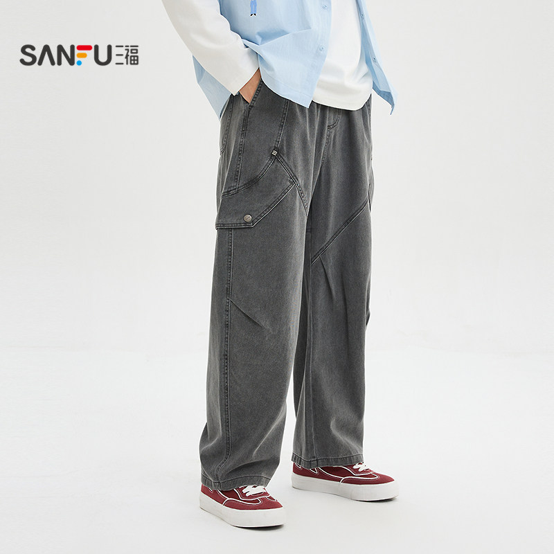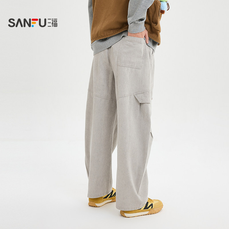 三福2026春季男士分割抽绳腰休闲裤 宽松直筒裤时尚裤子520751