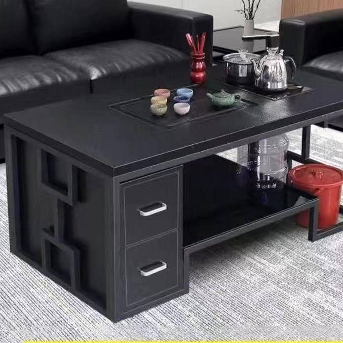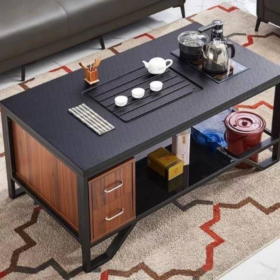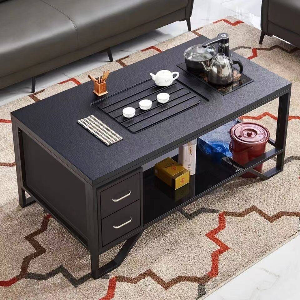 火烧石茶几功夫茶桌现代铁艺火山石喝茶茶几办公室商务简约茶几