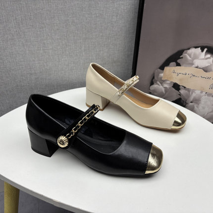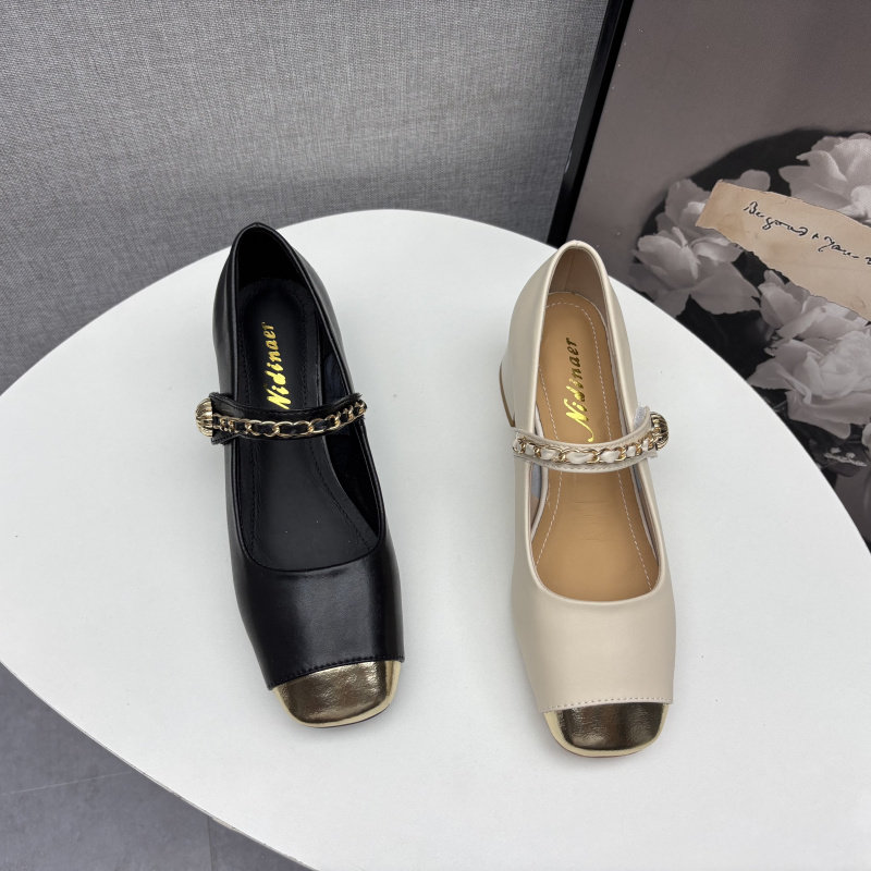 断码处理真皮女鞋2025春季新款时尚百搭粗跟中跟浅口玛丽珍女单鞋