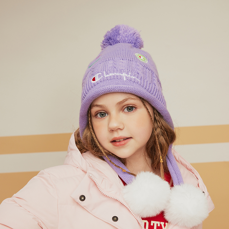 Champion冠军儿童2025秋季潮流LOGO标多元素可爱毛球保暖针织帽