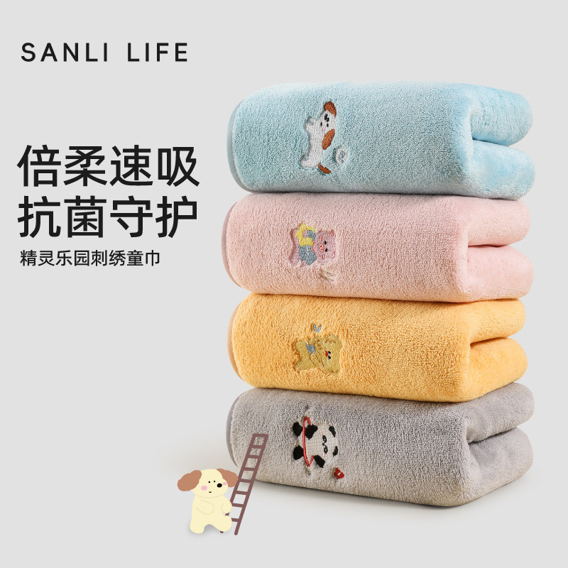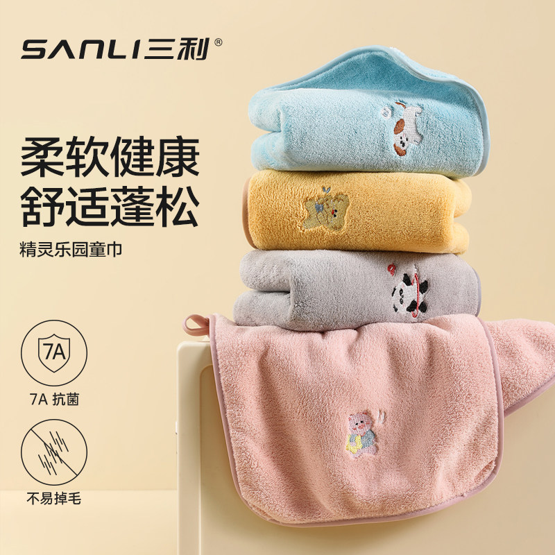 三利儿童巾宝宝成人洗脸毛巾比纯棉吸水家用速干柔软可爱刺绣面巾