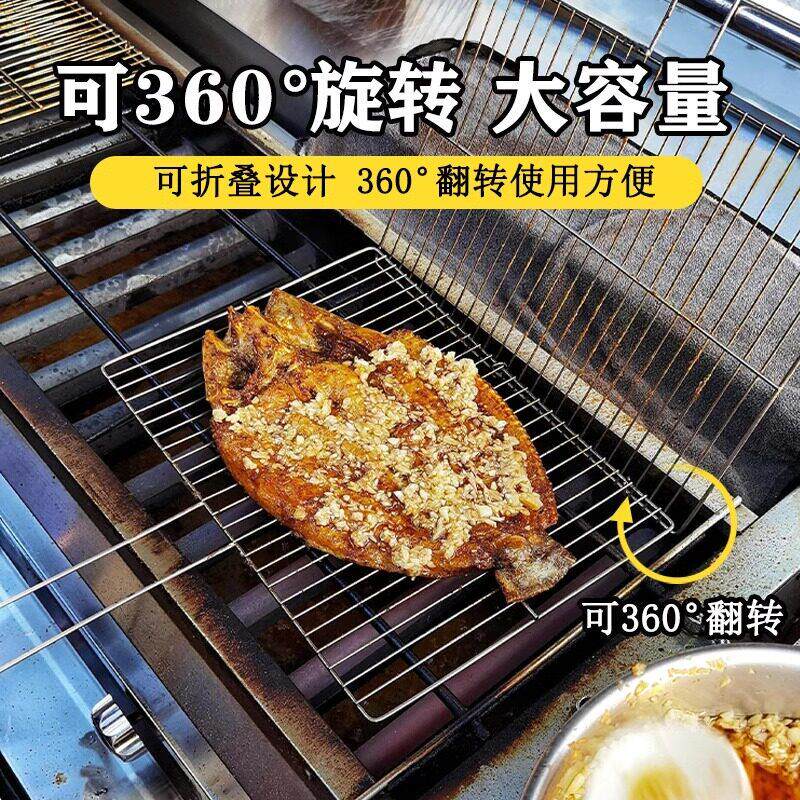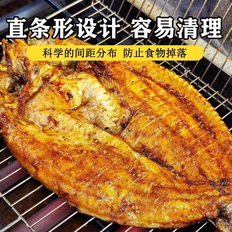 烧烤网烤鱼夹子加粗竖条纹横条不锈钢拍子家用商用双面烧烤用具配