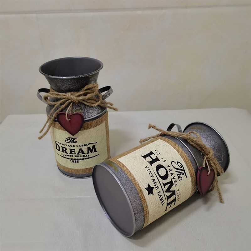 欧式做旧复古铁艺花瓶家居客厅装饰摆件笔桶收纳桶插花桶装饰摆件