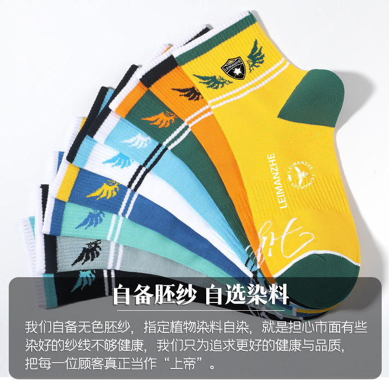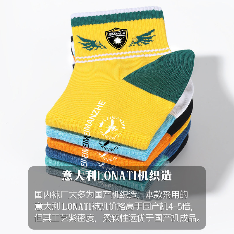 雷曼哲纯棉袜子男士中筒袜长袜春秋款抗菌防臭吸汗运动袜短袜男生