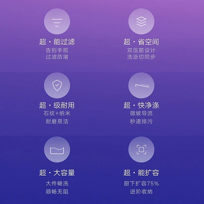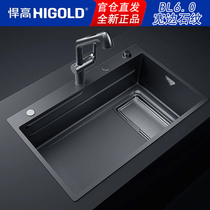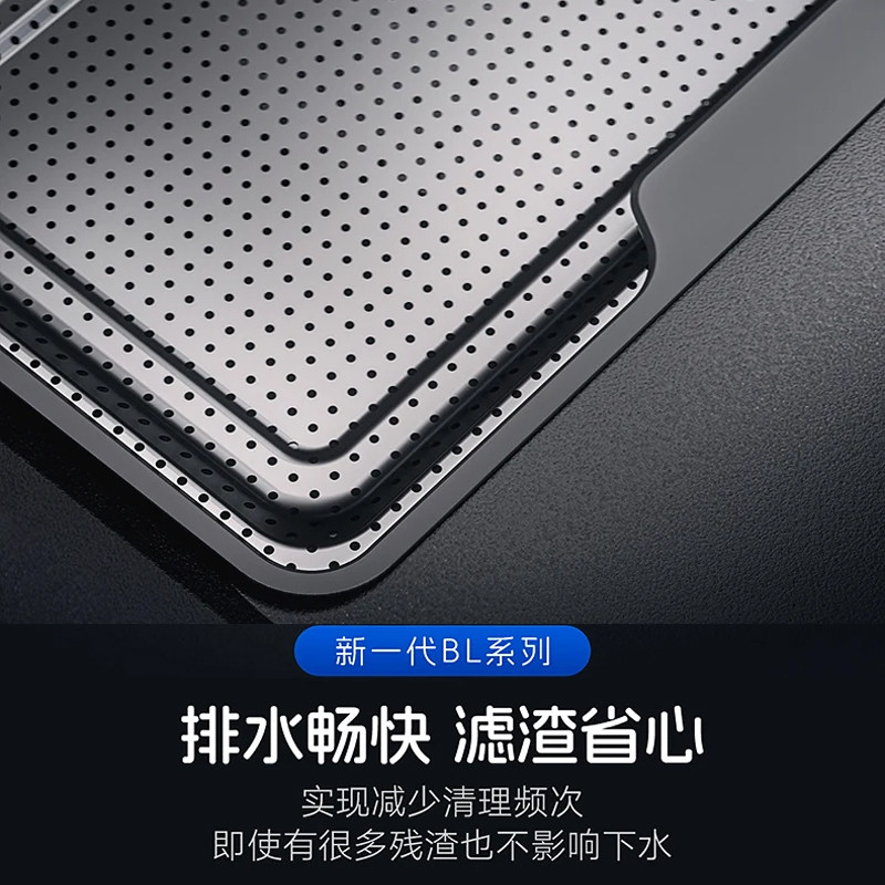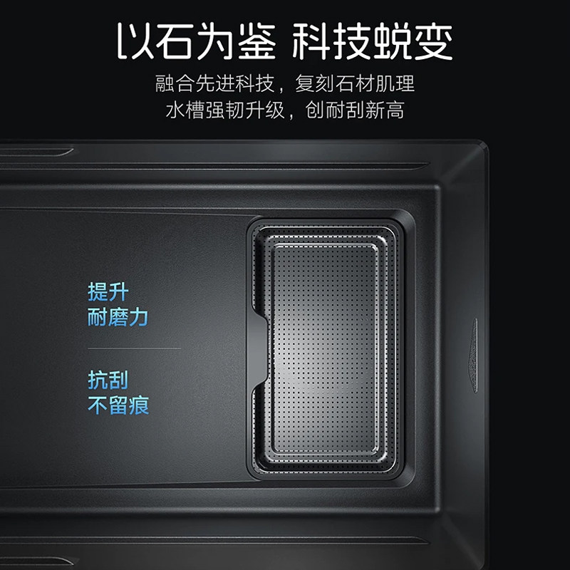 悍高BL6.0石纹水槽台控纳米灰窄边双筋304不锈钢集渣大单槽洗菜盆