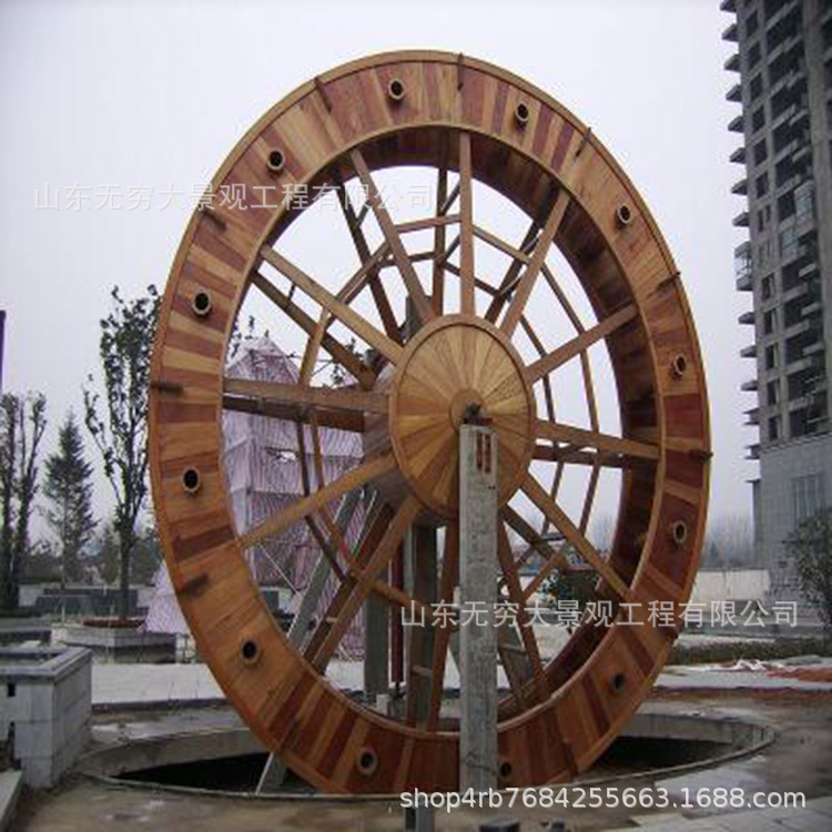 制作水车博览园网红打卡引流道具 户外防腐木流水筒车落地摆件