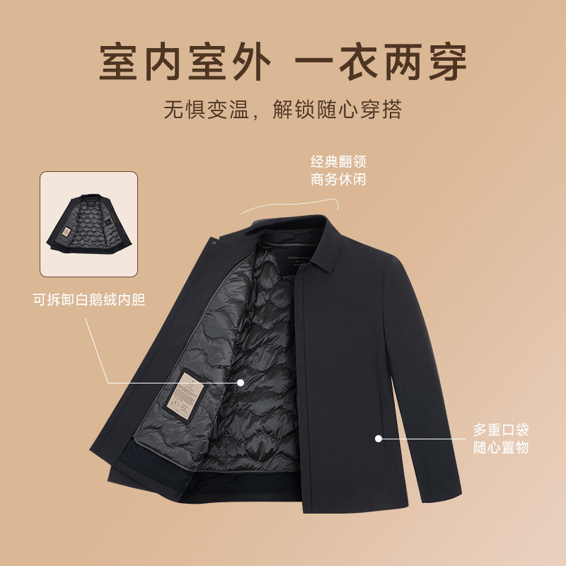 [可拆卸鹅绒内胆]SATCHI沙驰男装男士夹克羽绒服冬季新款商务外套